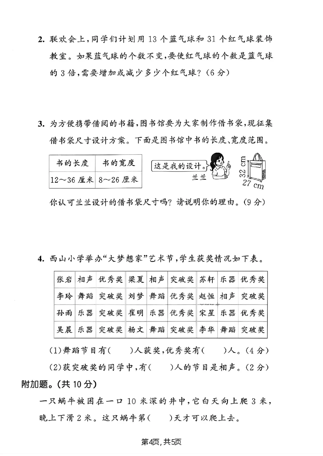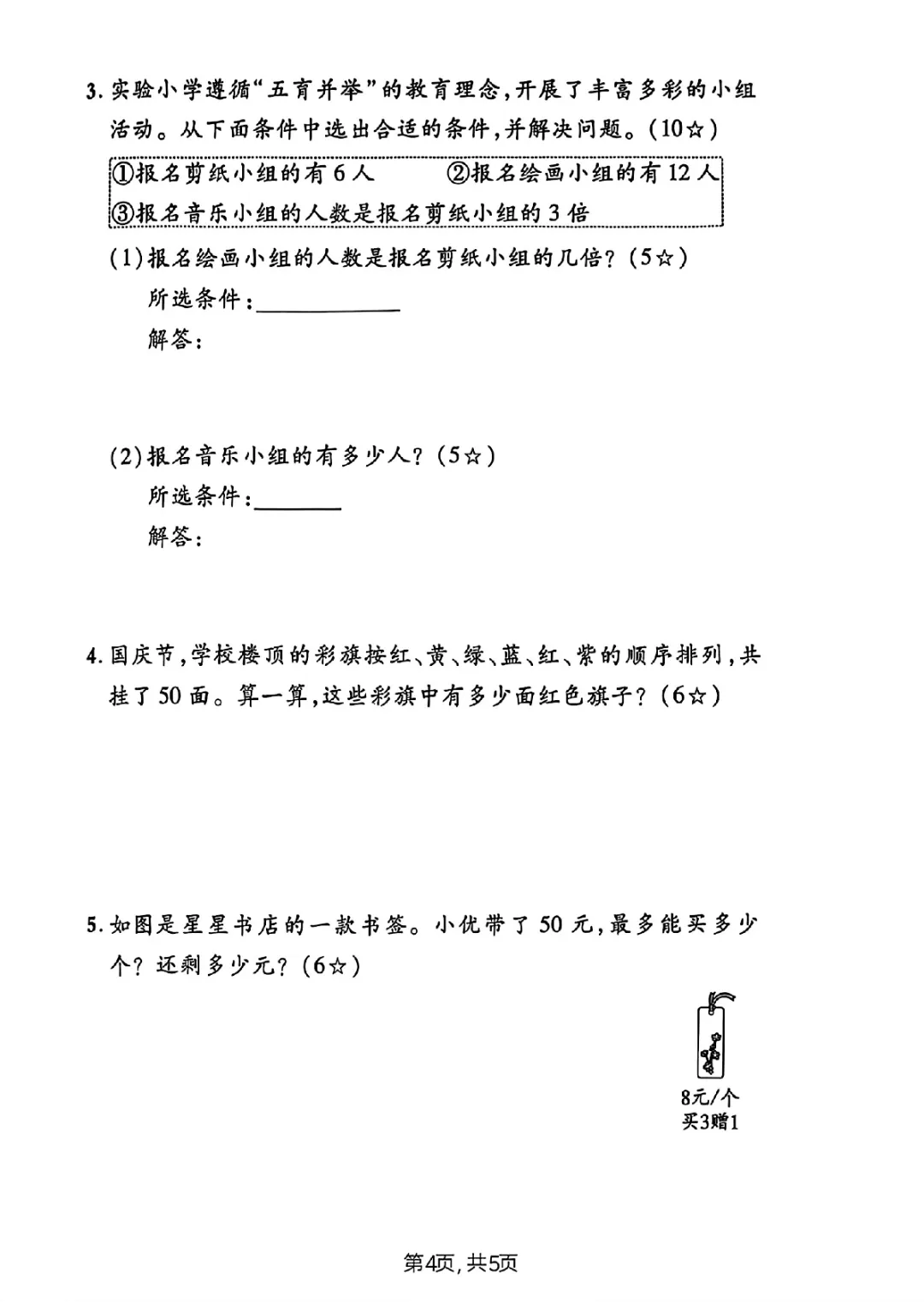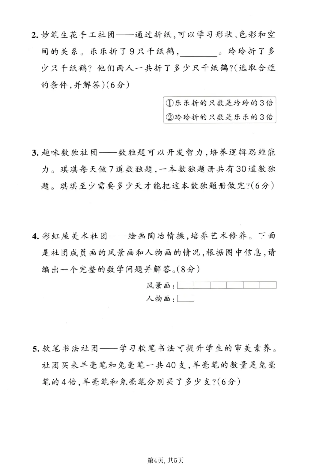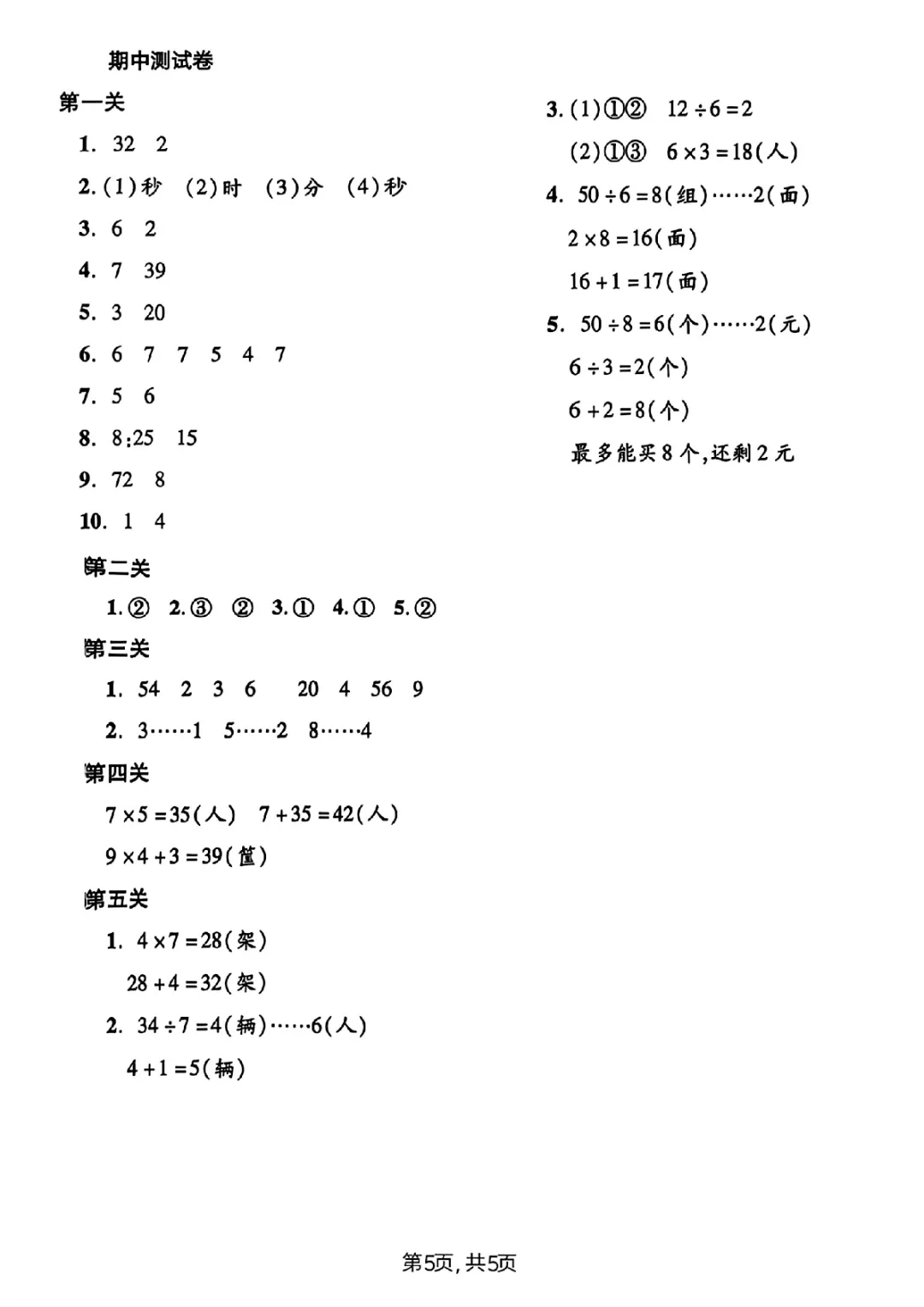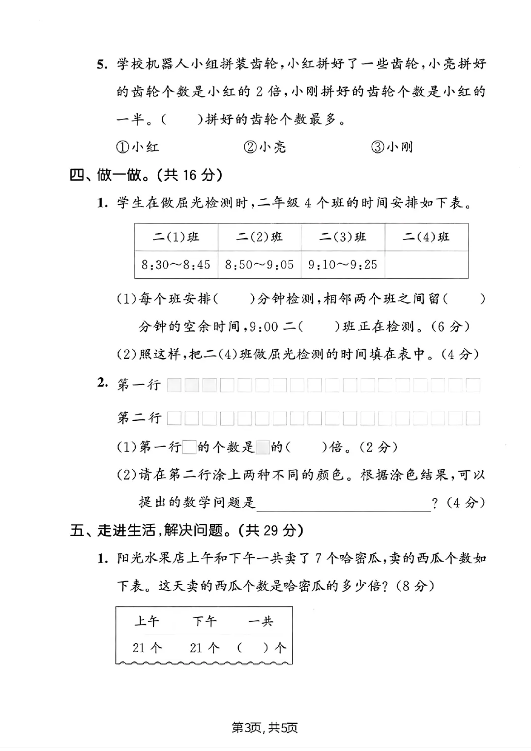 2026年二年级下册数学、语文期中试卷(共5套)(电子版可打印)