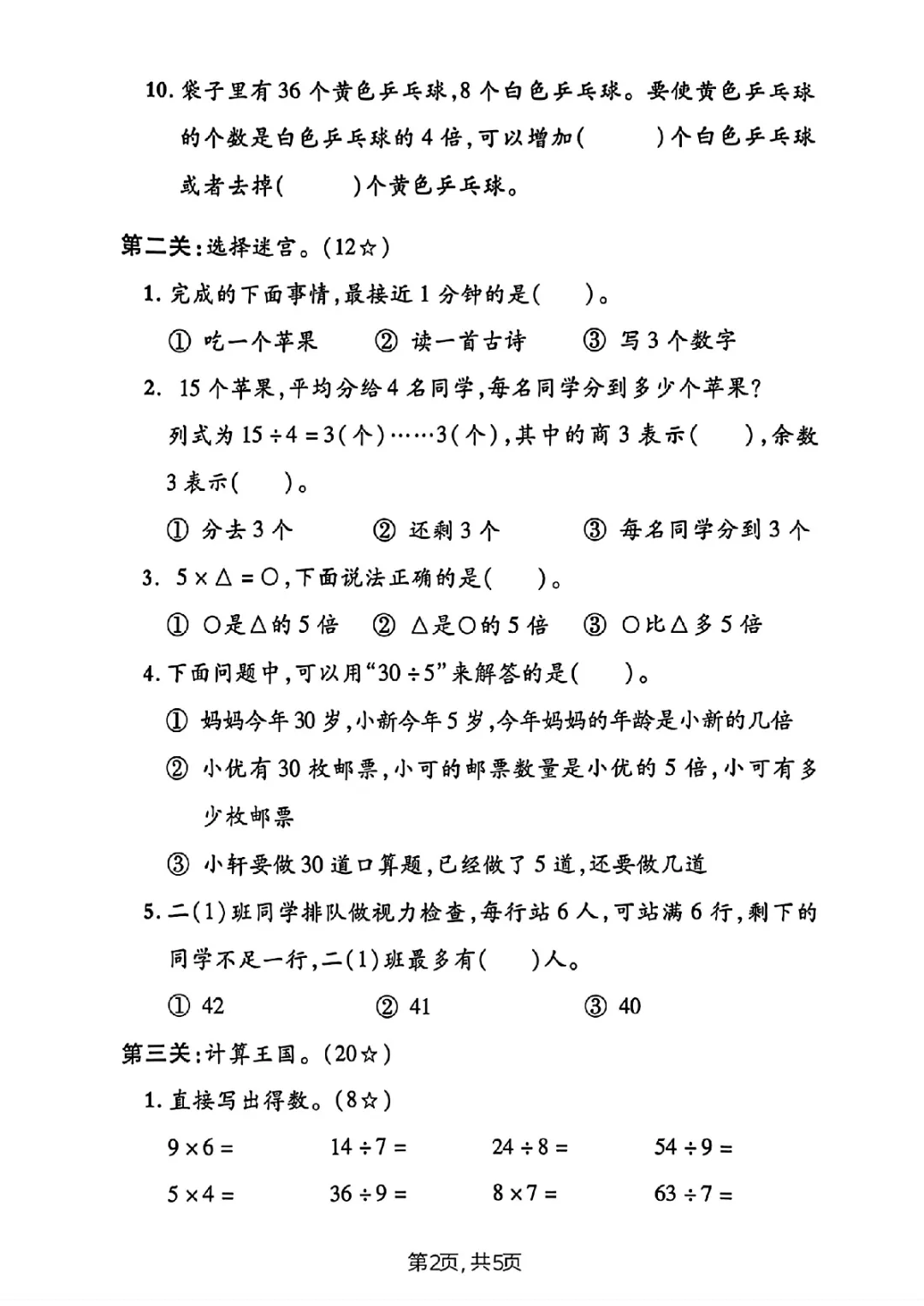 2026年二年级下册数学、语文期中试卷(共5套)|电子版可打印