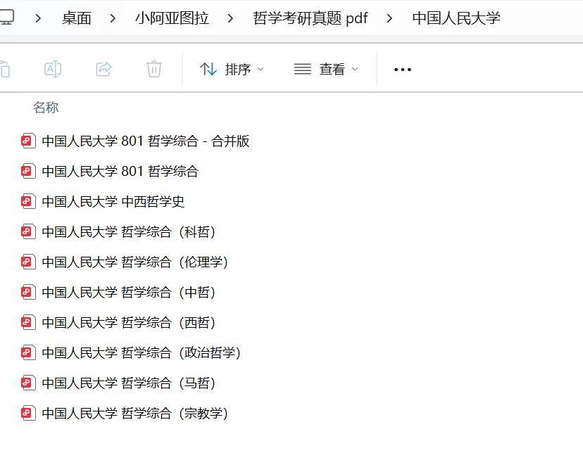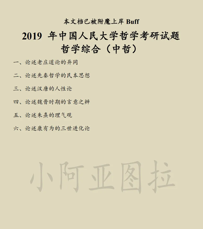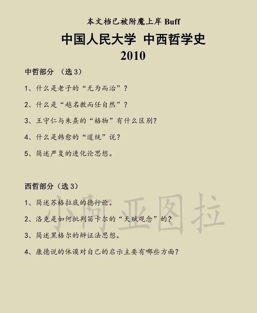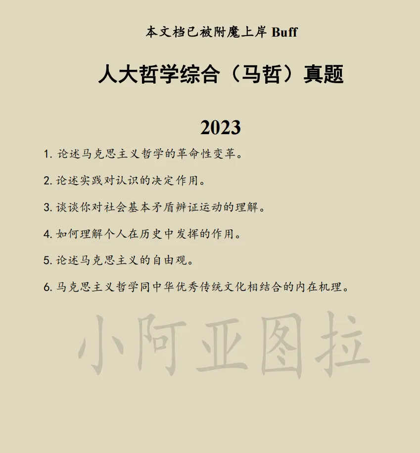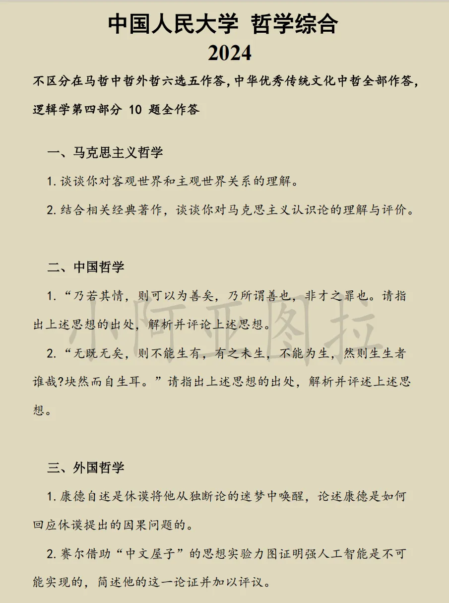 在2023年以前每个细分方向是单独出卷的,现在合并了。这份真题包含了改革前人大中西马三个方向的试题,以及中西哲学史科目(即上述列举年份)