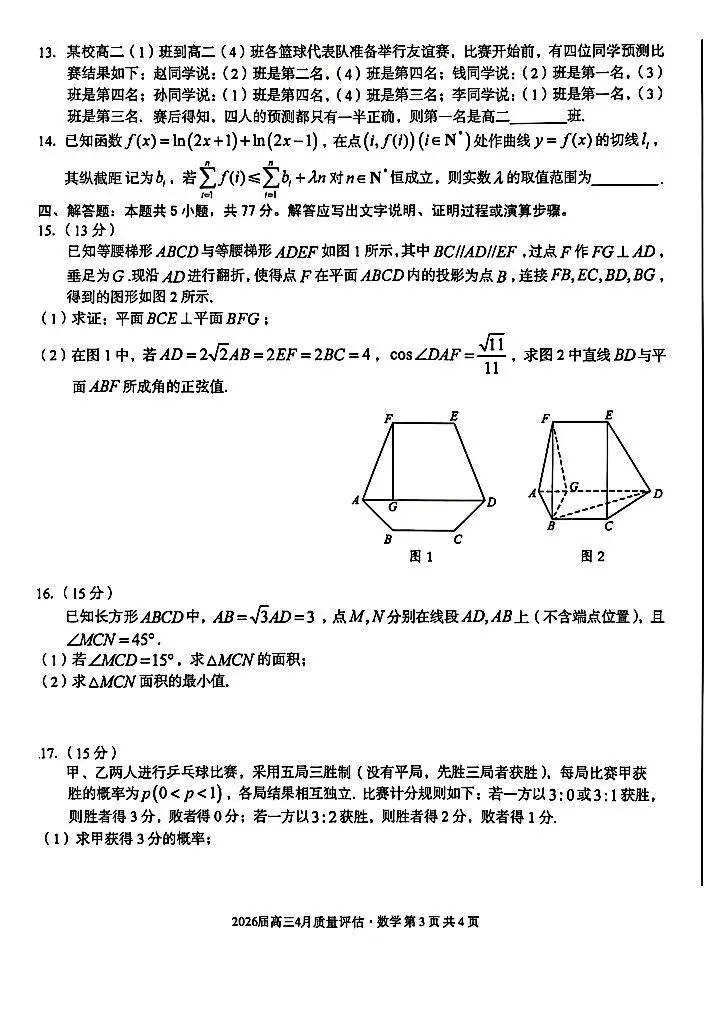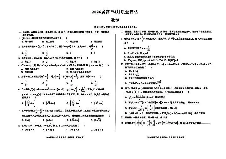 2026高三4月二模考试卷