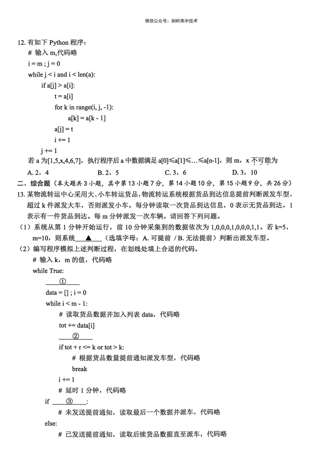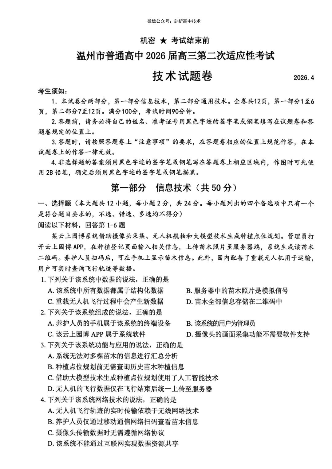 >2026年4月温州市高三二模技术试卷