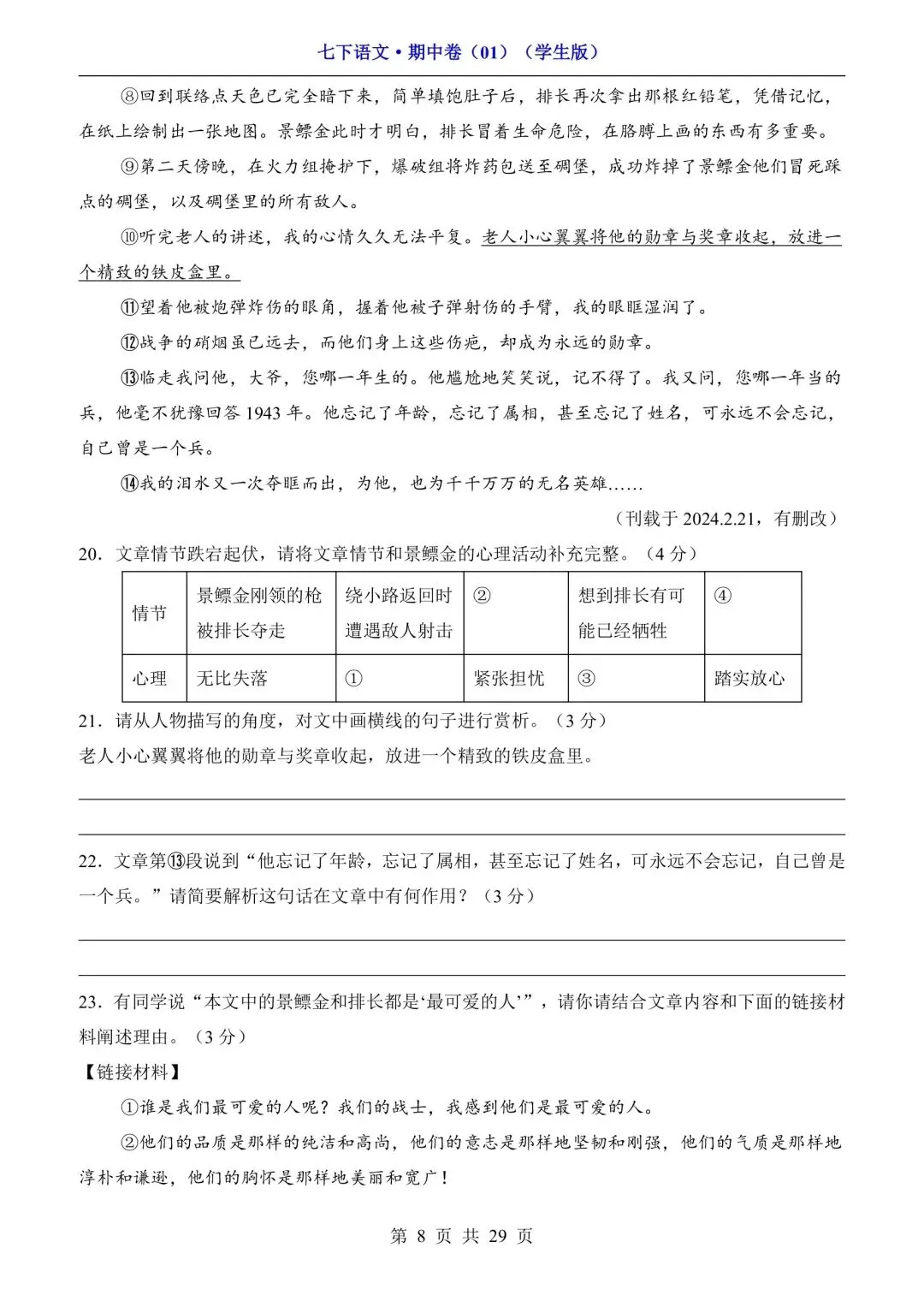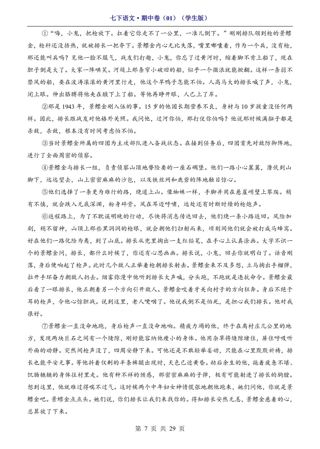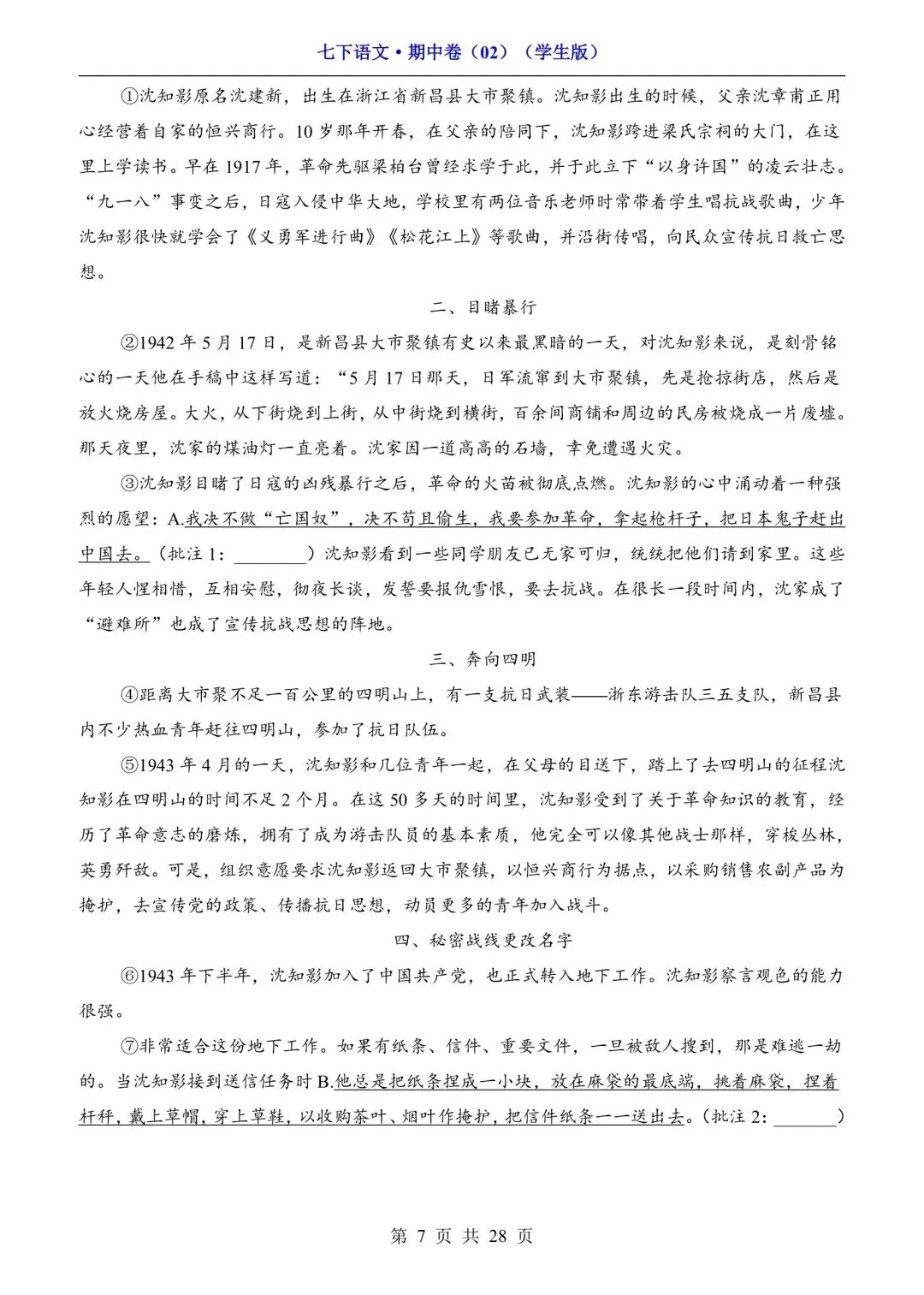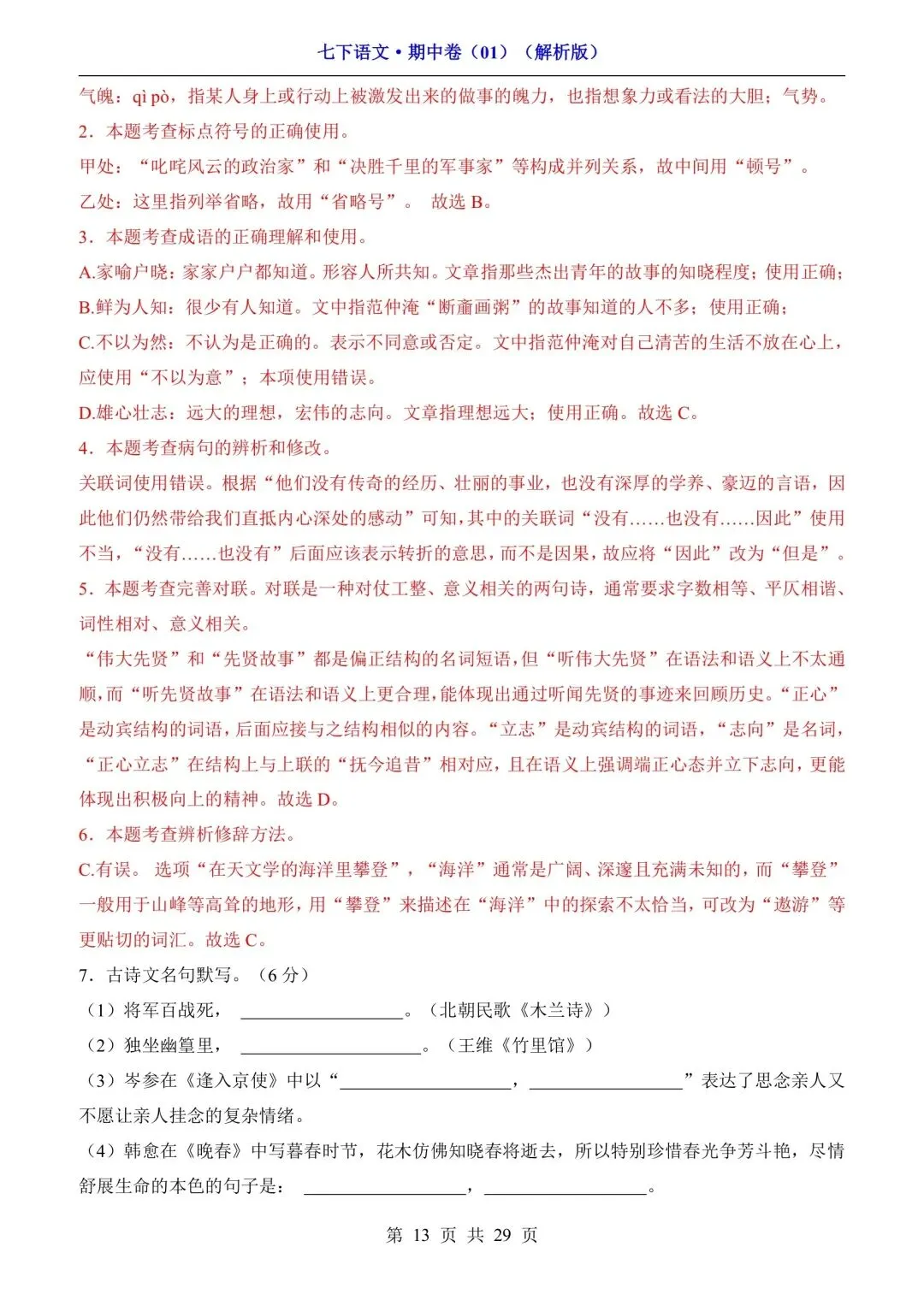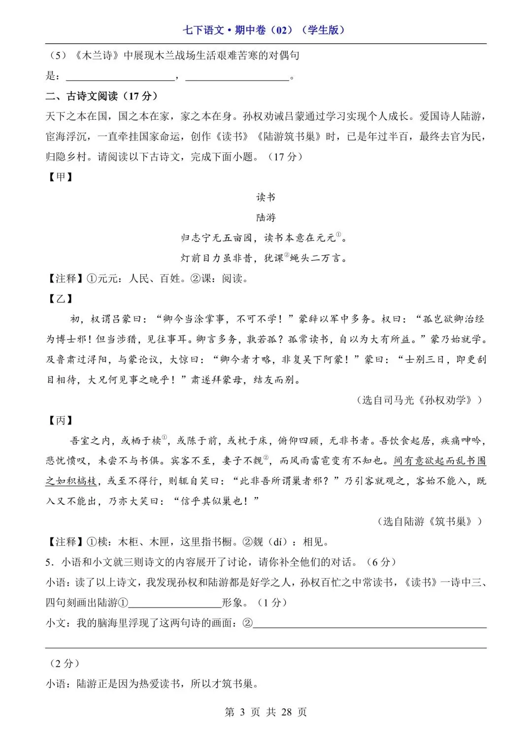2026年春七年级下册人教版语文《期中考试真题测试卷》(考查1-3单元)(共2套,含答案解析),完整电子版可打印