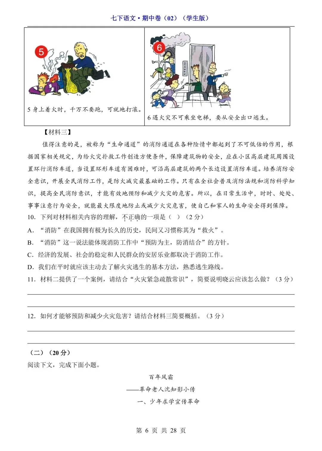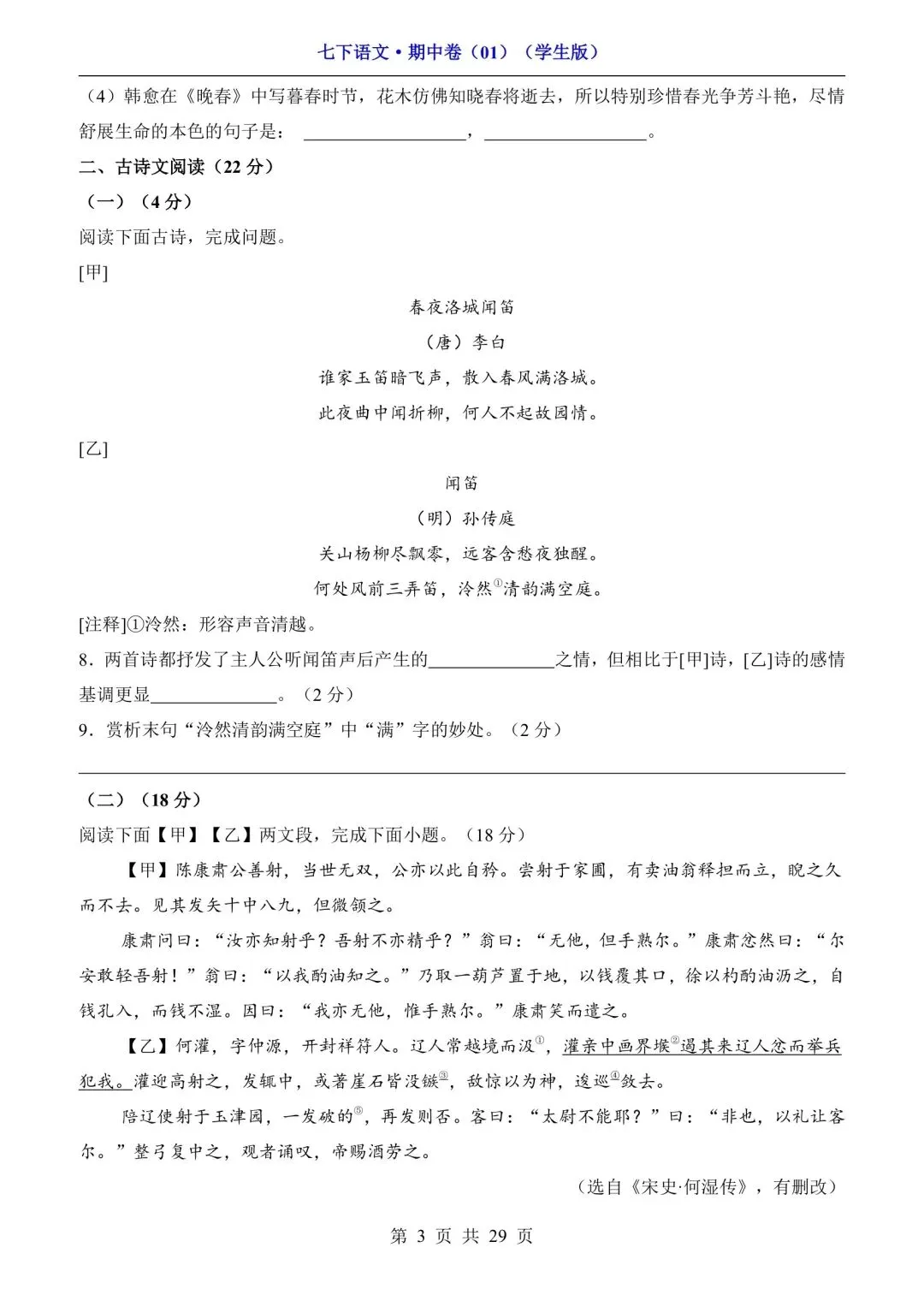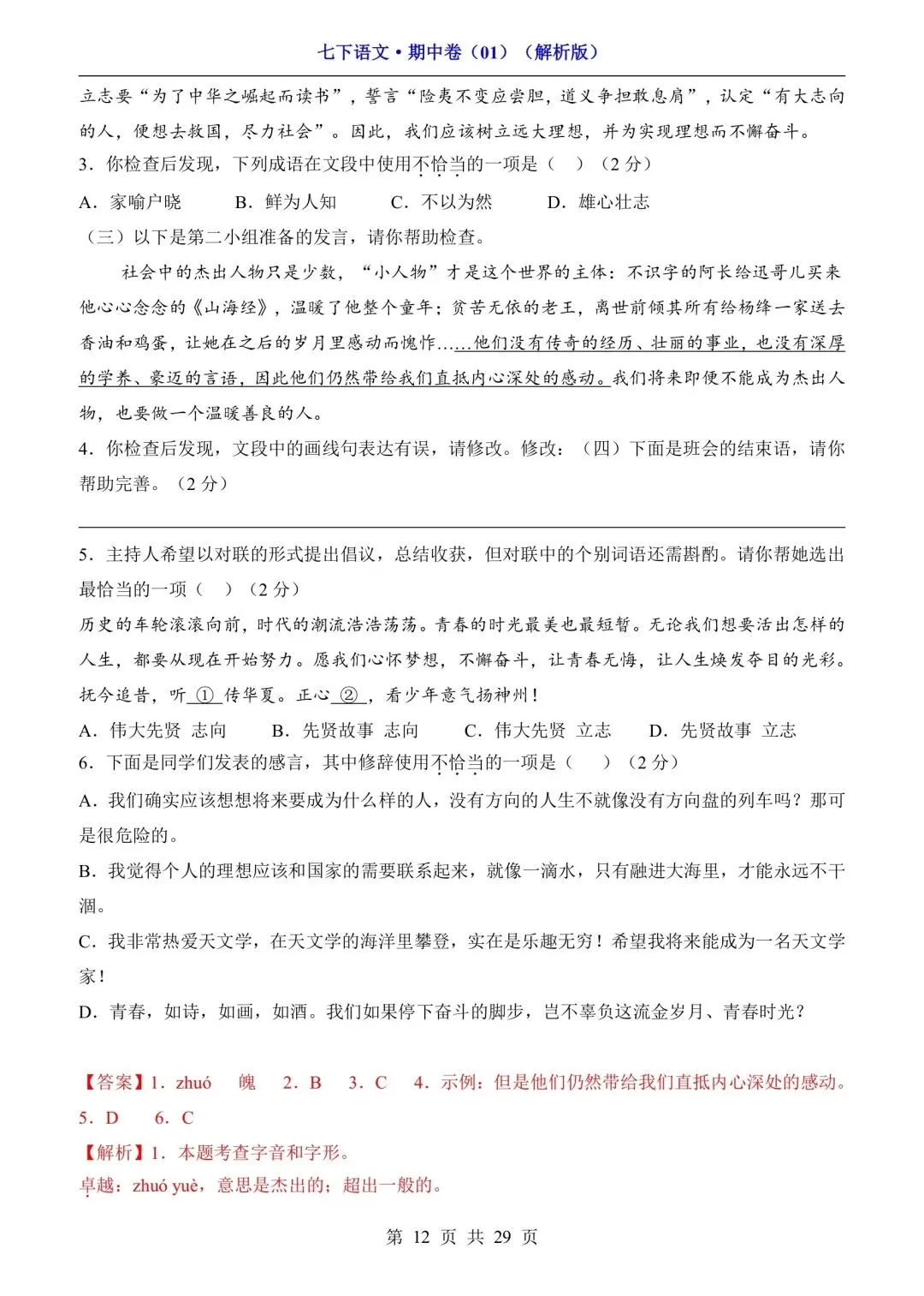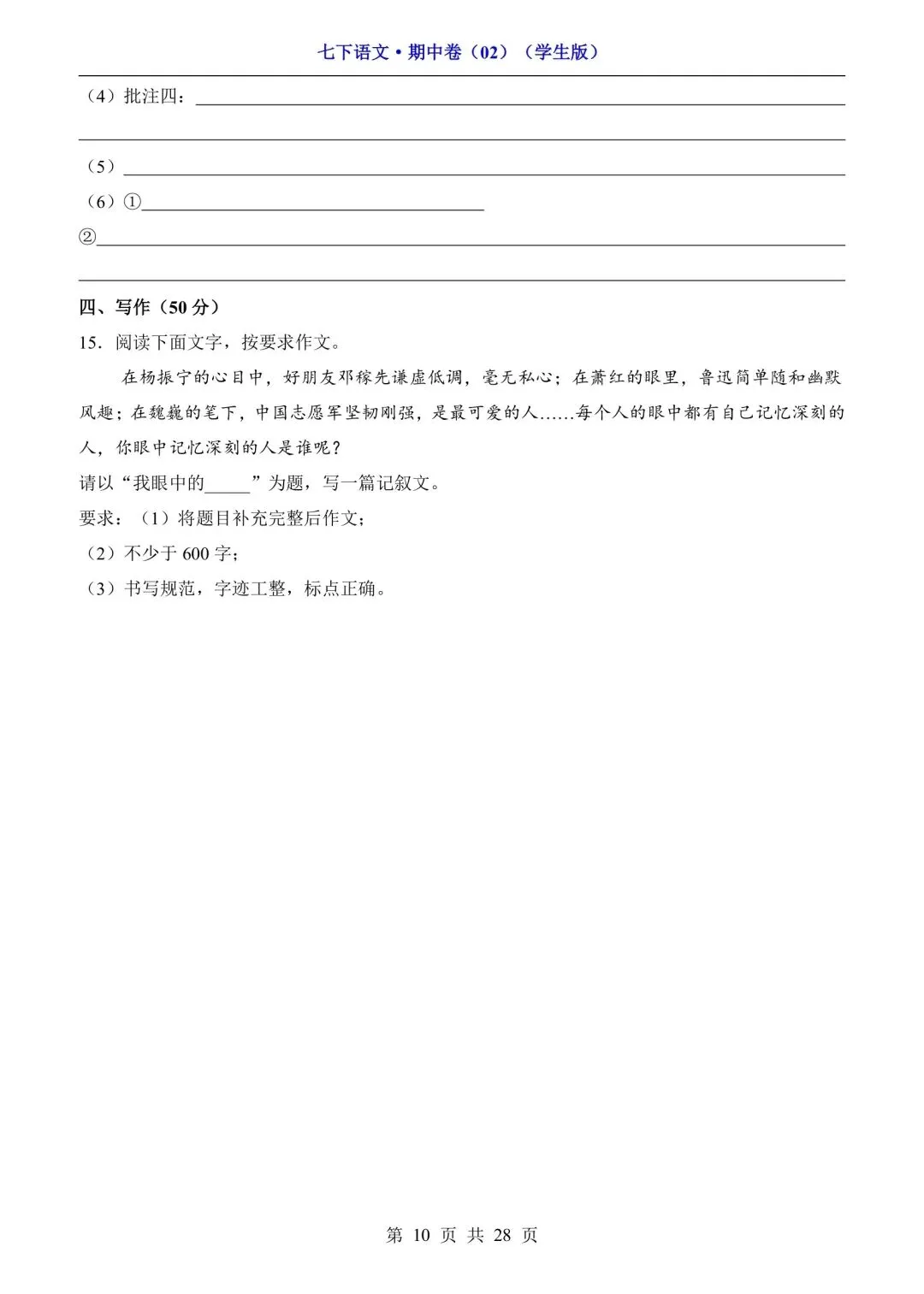 2026年春七年级下册人教版语文《期中考试真题测试卷》(考查1-3单元)(共2套,含答案解析),完整电子版可打印