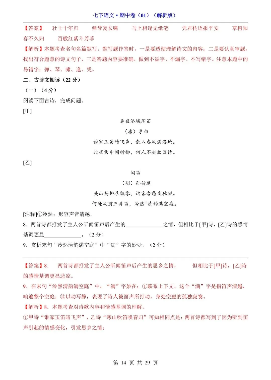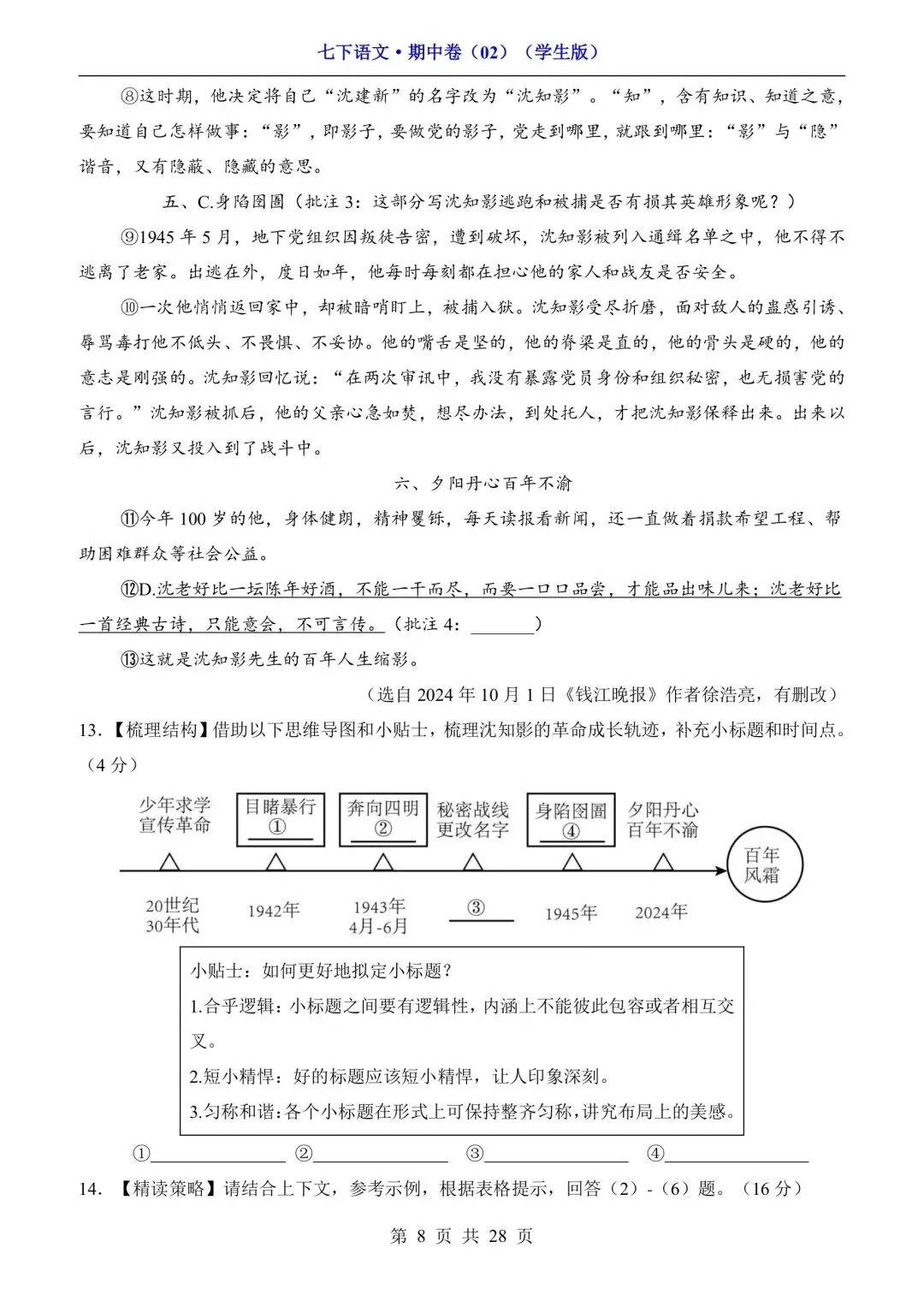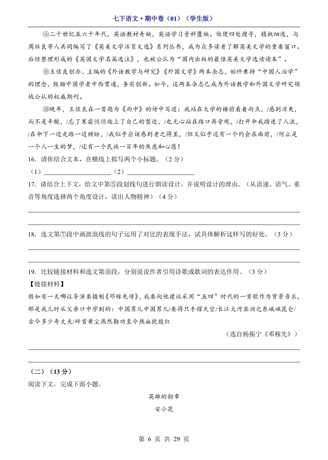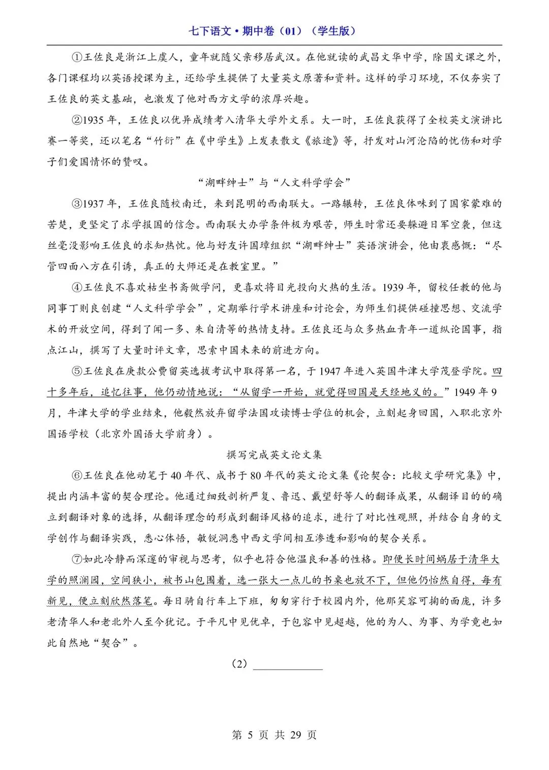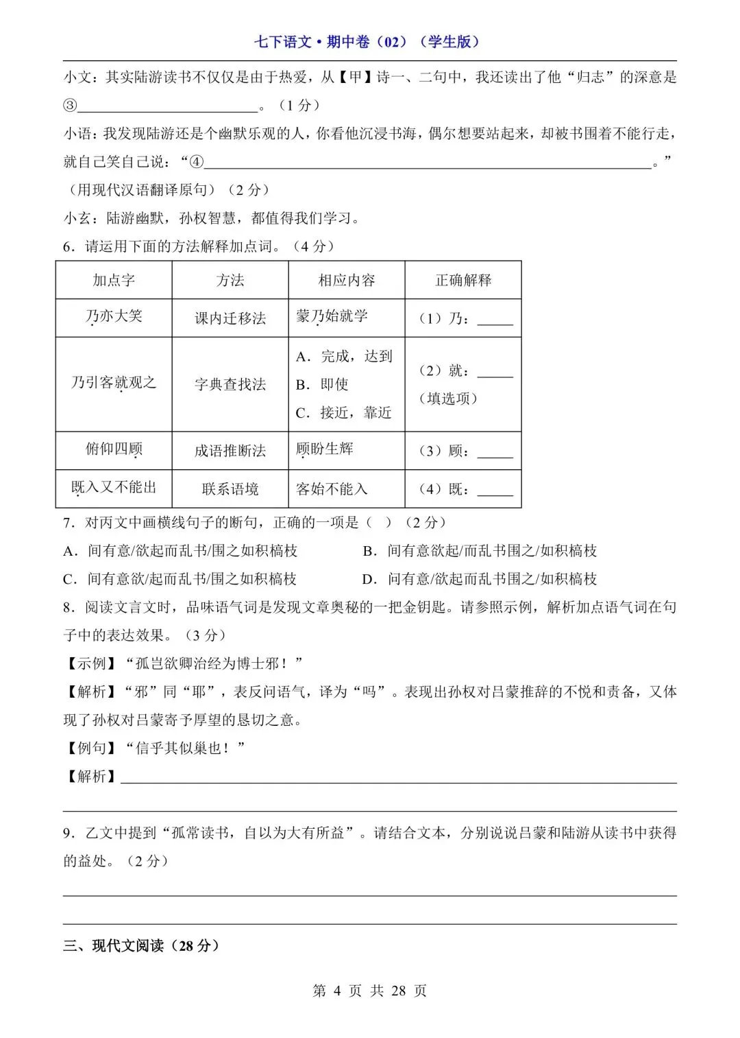 2026年春七年级下册人教版语文《期中考试真题测试卷》(考查1-3单元)(共2套,含答案解析),完整电子版可打印