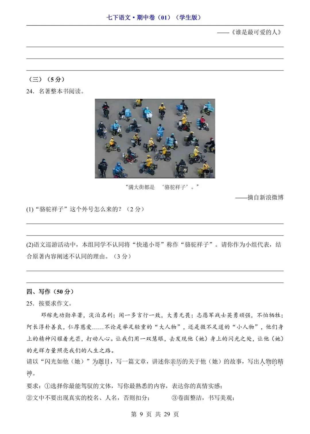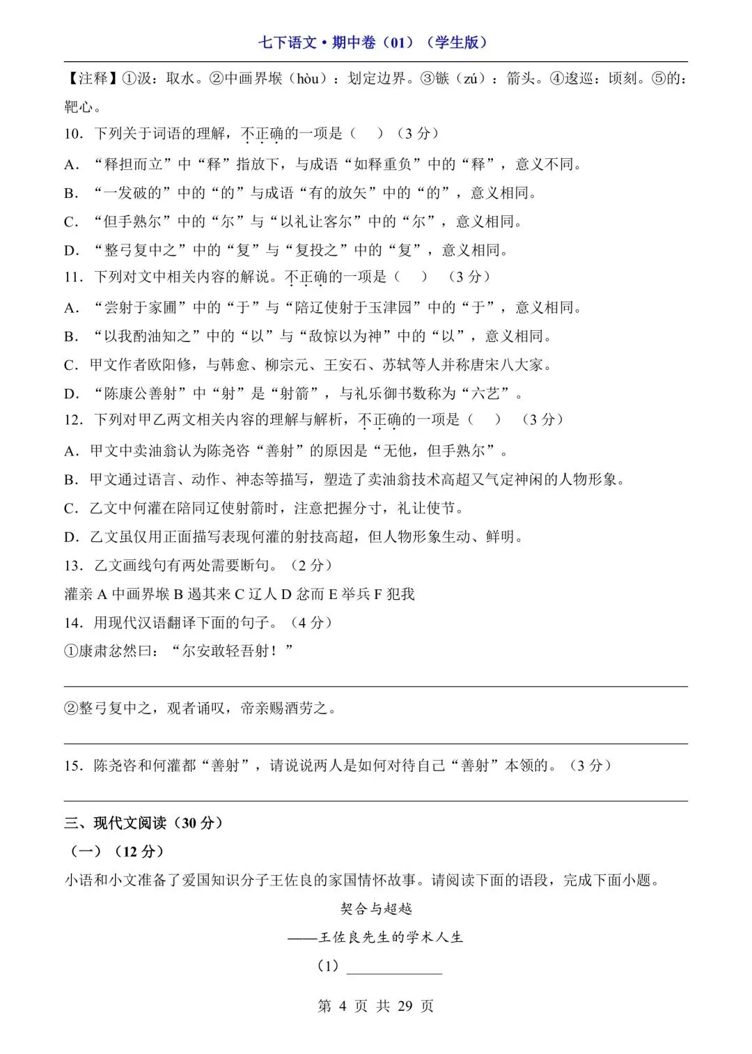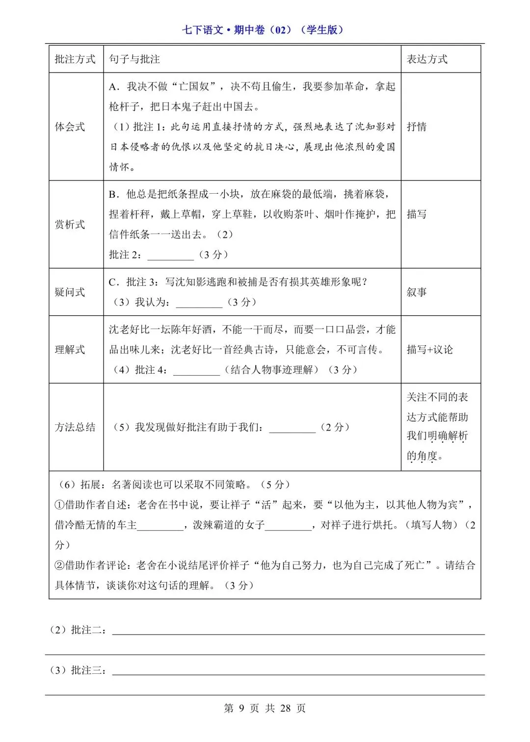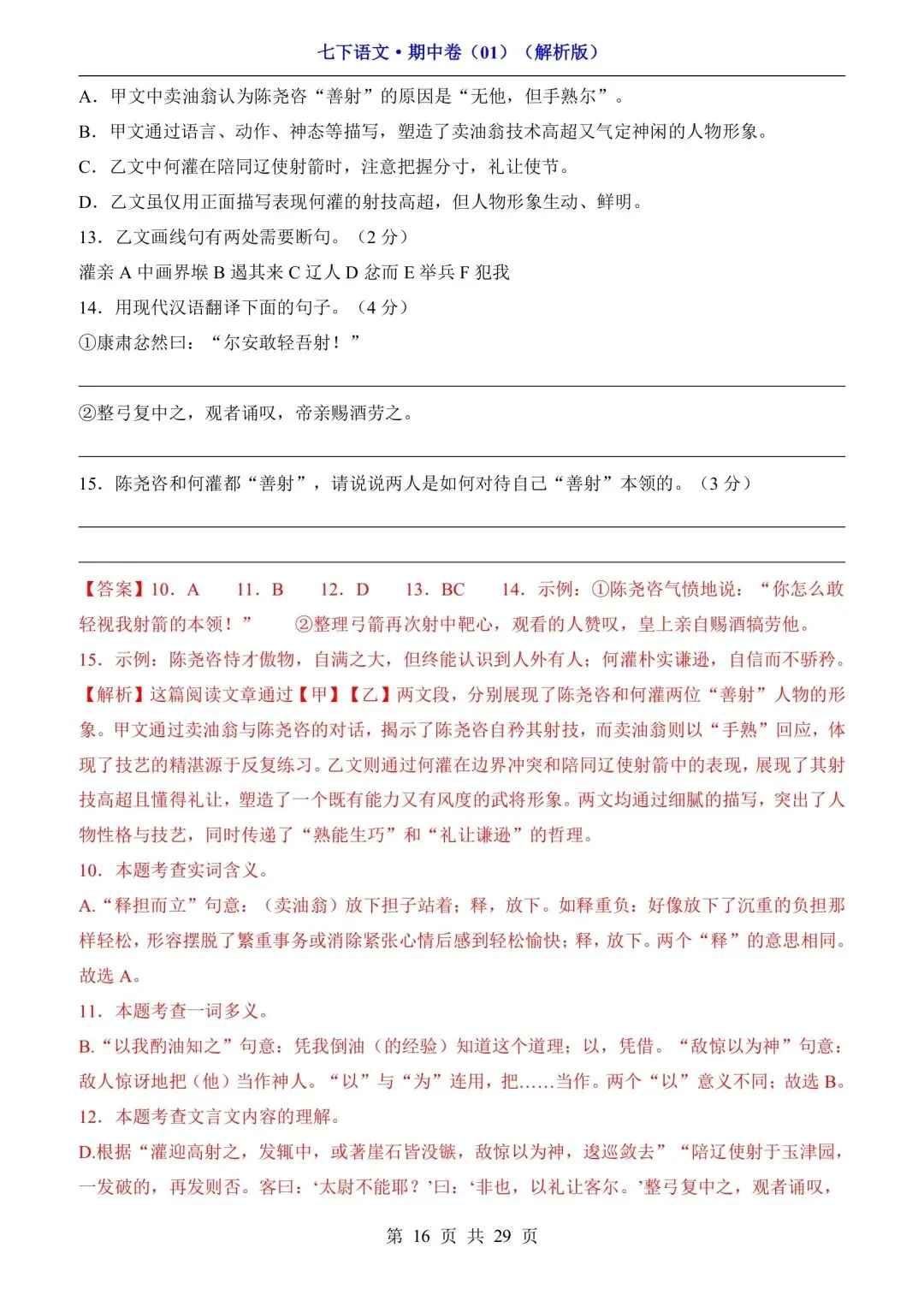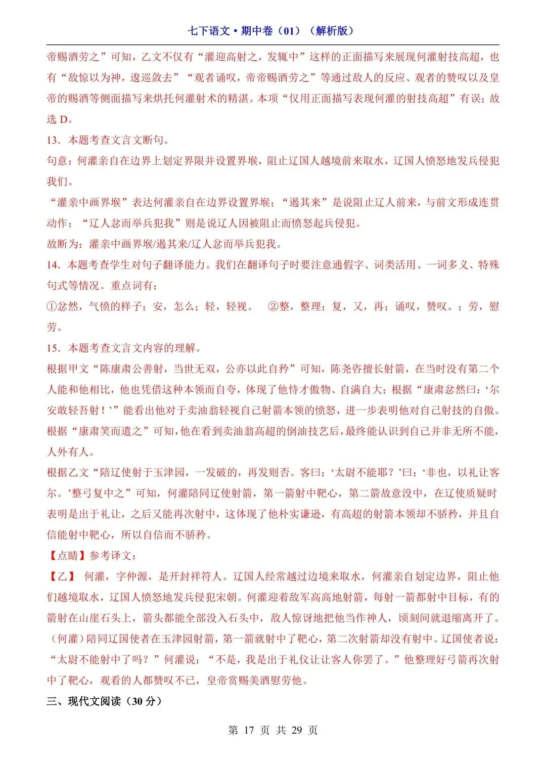 2026年春七年级下册人教版语文《期中考试真题测试卷》(考查1-3单元)(共2套,含答案解析),完整电子版可打印