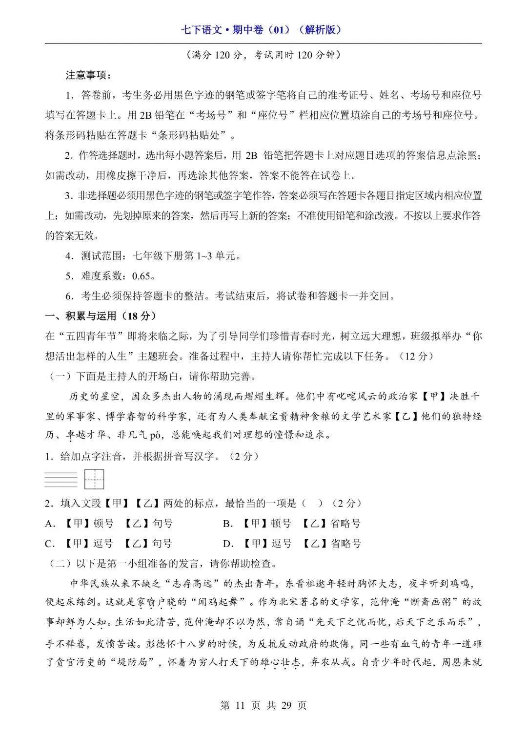 🌈今日分享的学习资料是:2026年春新版初一七年级下册人教版语文《期中考试真题测试卷》(考查1-3单元)【共2套,含答案解析】,高清完整电子版可打印。这套期中测试卷能帮孩子复习和巩固1-3单元核心知识点,家长可以打印出来让孩子练一练,查缺补漏、熟悉题型,助力语文期中考试取得好成绩吧~