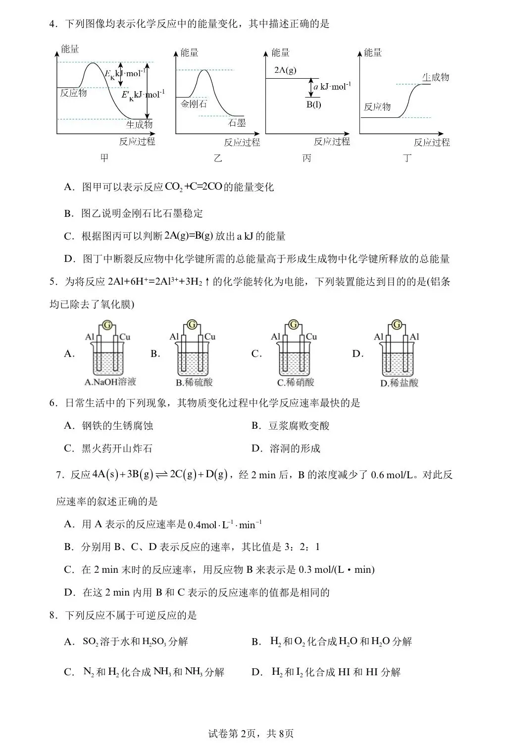 8.黑龙江省哈尔滨市第四中学校2024-2025学年高一下学期期中考试化学试题