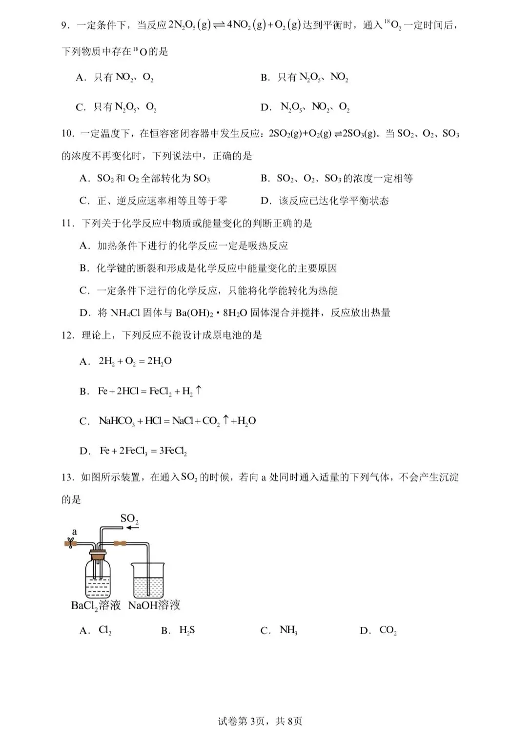 7.黑龙江省哈尔滨市第三中学校2024-2025学年高一下学期期中考试化学试卷