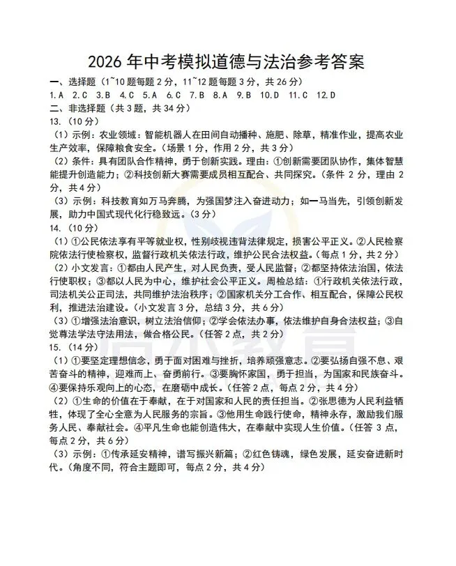 启禾教育|唐山初三一模道德与法治试卷附专业完整解析