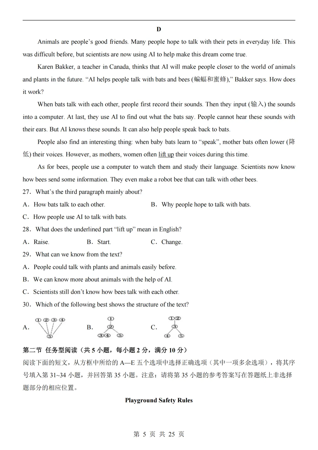 2025年新高考二卷英语真题试卷、听力音频及答案解析完整版PDF