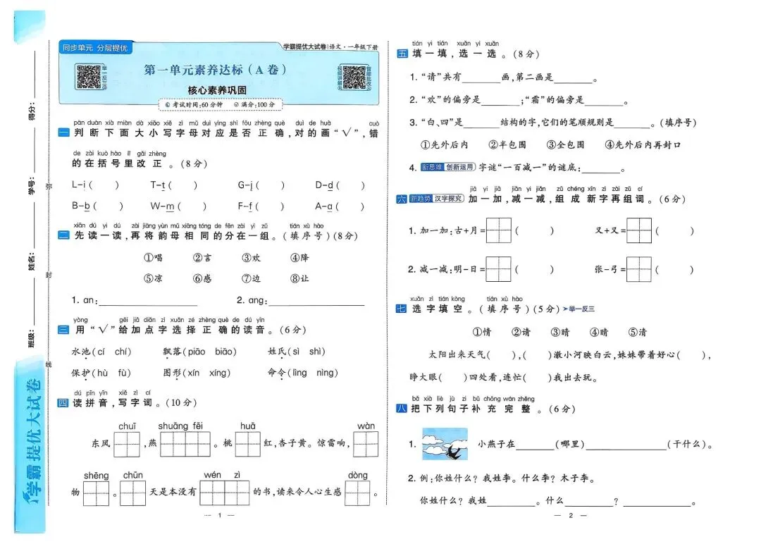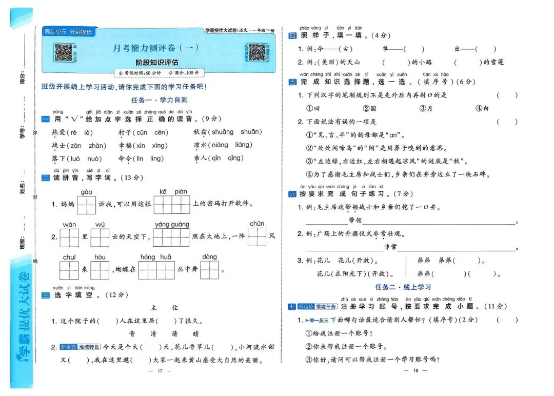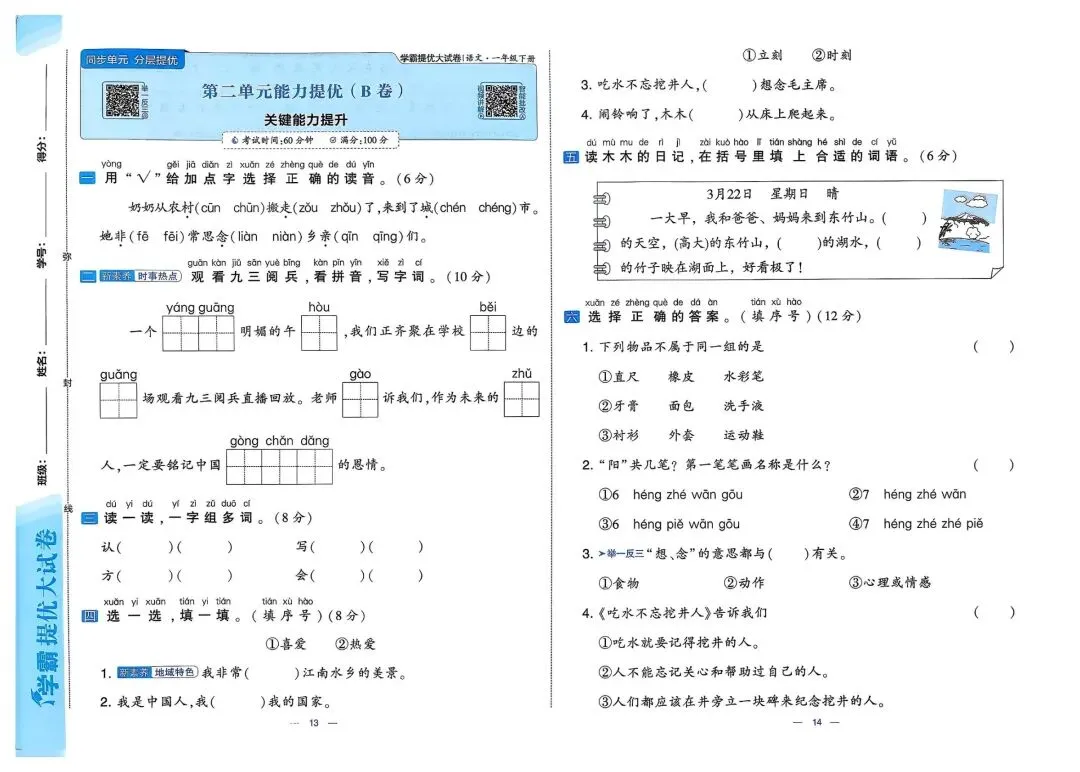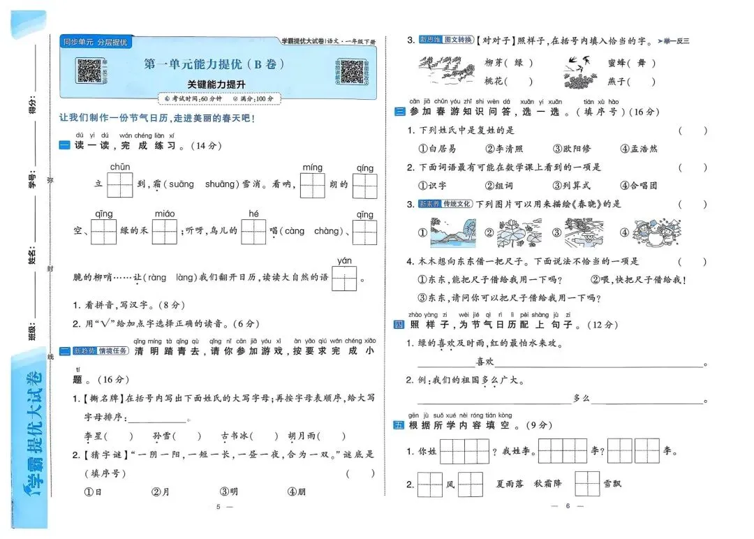 🧨🧨26春1-6年级语文《学霸提优大试卷》下册
