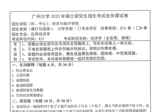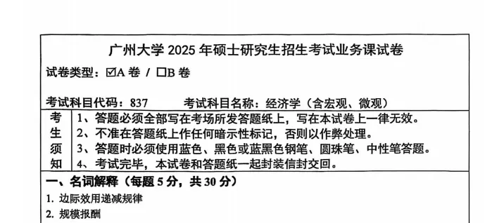 2018-2025年广州大学837经济学考研真题试卷