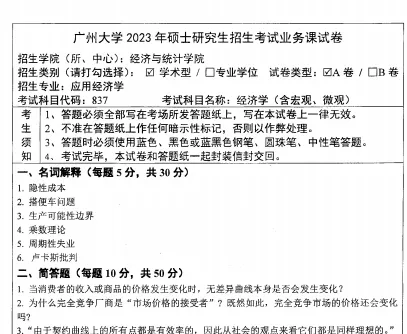2018-2023年广州大学837经济学考研真题答案详解