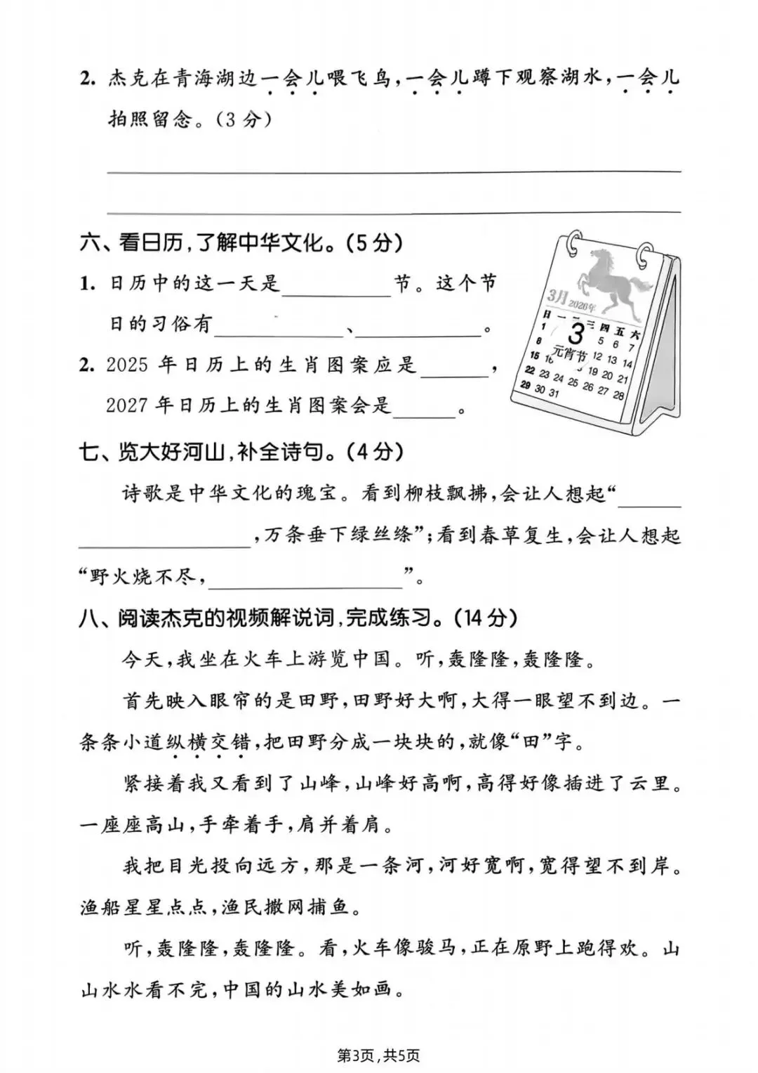2026春一年级语文下册期中试卷5套,可下载