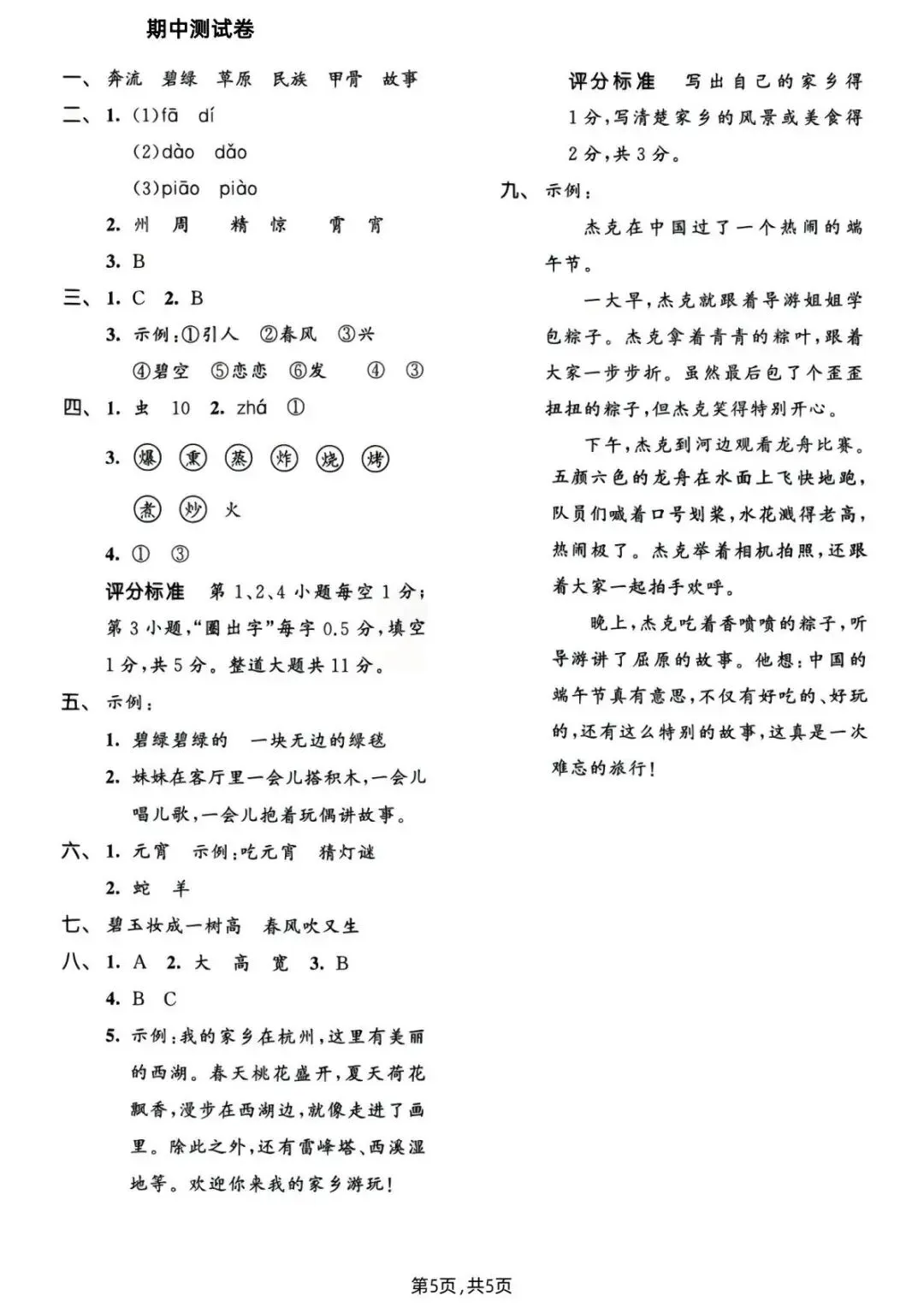 2026春二年级语文下册期中试卷5套,可下载