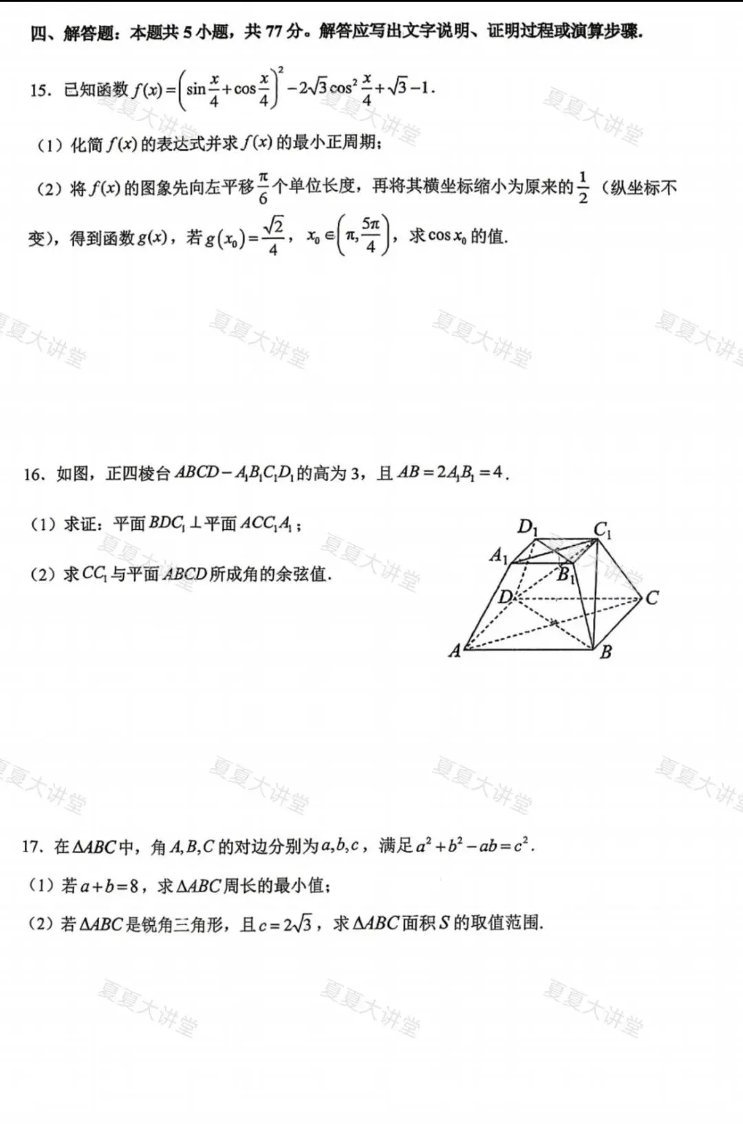 下面是一个数学试卷,如果有高三学生,请让孩子仔细做一遍,同类型题高考中大概率会出现很多,祝高考金榜题名,请保存.