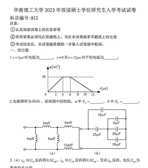 2023年华南理工大学812电路原理考研真题试卷与参考答案