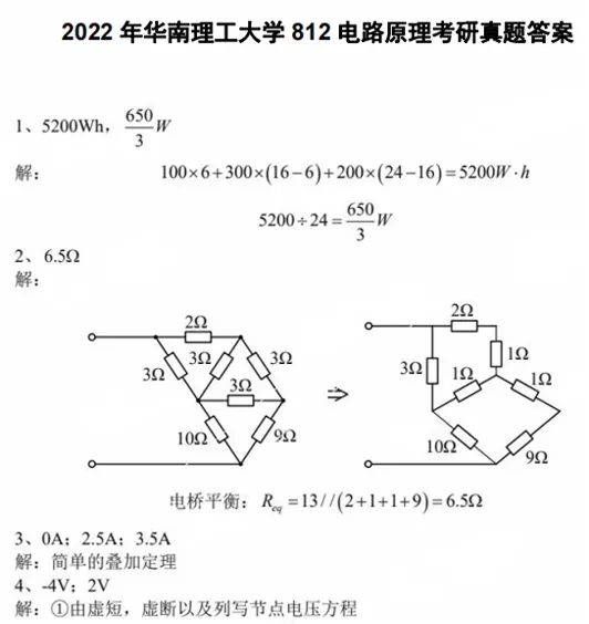 2024年华南理工大学812电路原理考研真题试卷与参考答案