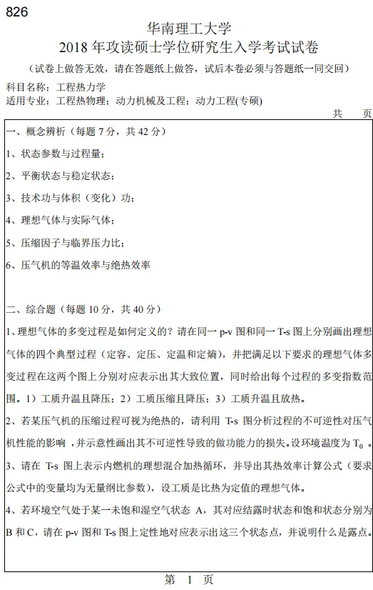 2025-2026华工考试大纲要求:压缩因子、范德瓦尔方程和对应(比)态定律应重点掌握;能利用热力学能、焓、熵和比热容等的一般关系式进行进行简单的公式推导和证明。选读书目:《工程热力学》(第五版)沈维道童钧耕主编,高等教育出版社,2016年