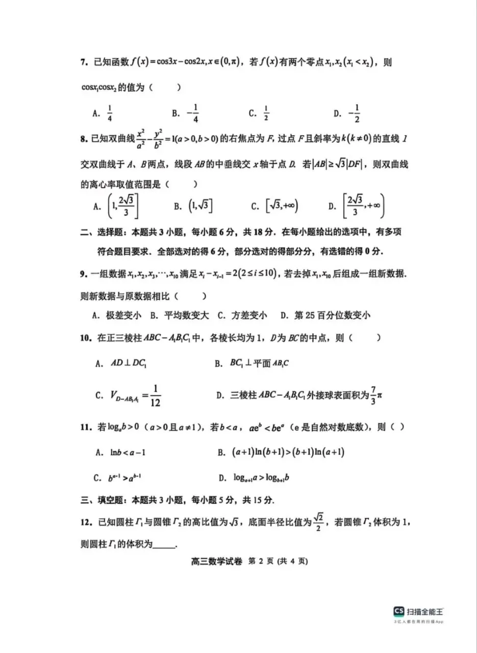 今日分享:江苏扬州市2026届高三第一次调研试卷+答案