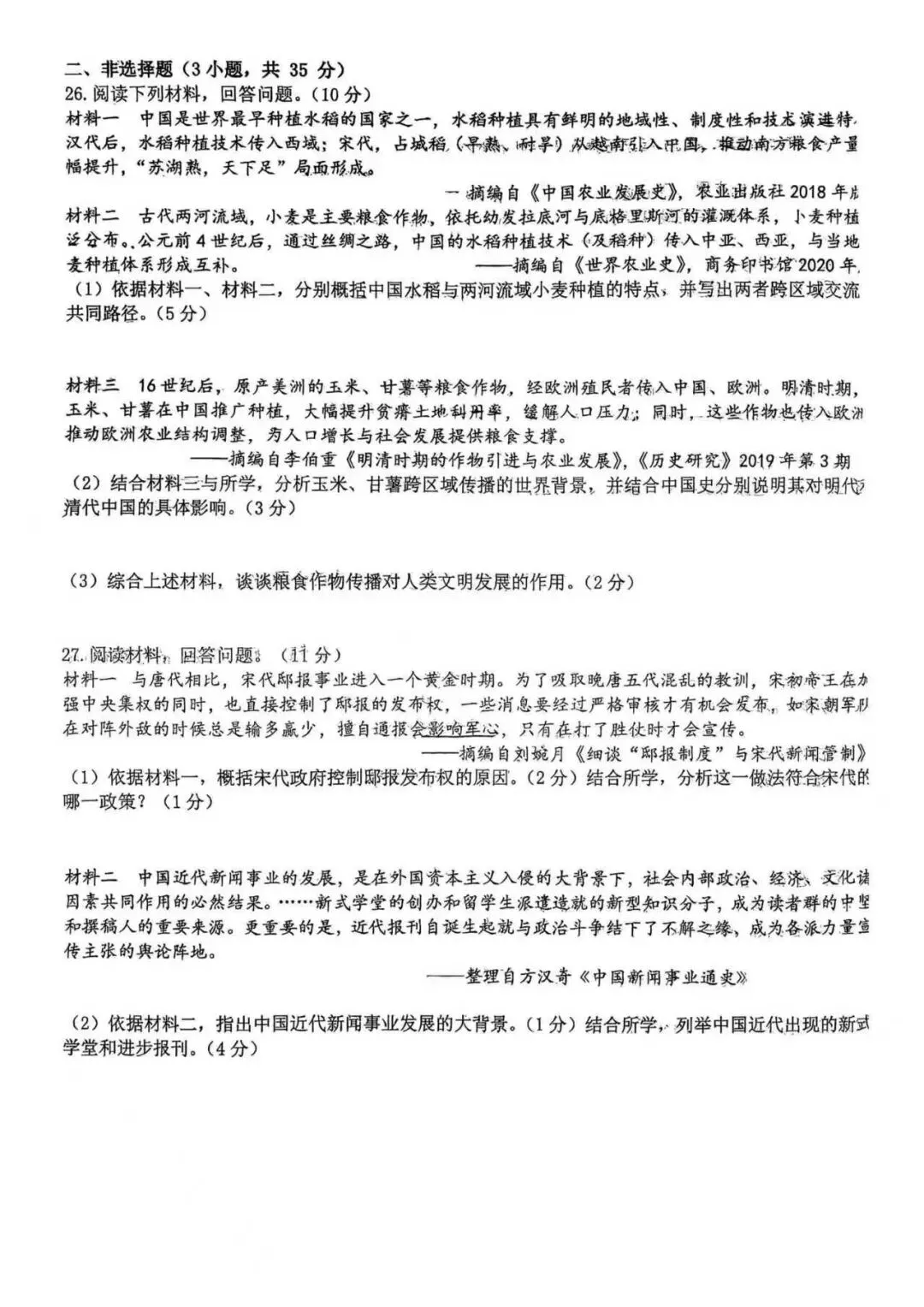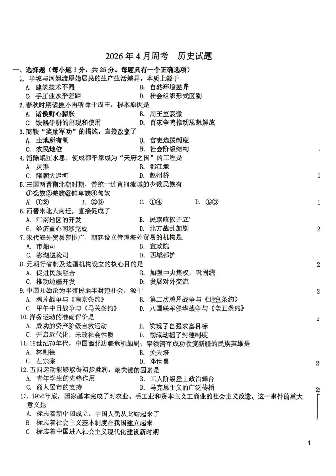 省二 九下月考 历史试卷+答案【2026.4】