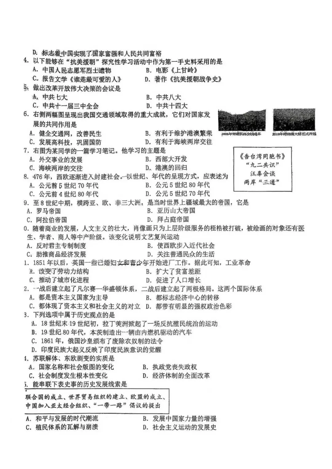 >省二 九下月考 历史试卷+答案【2026.4】