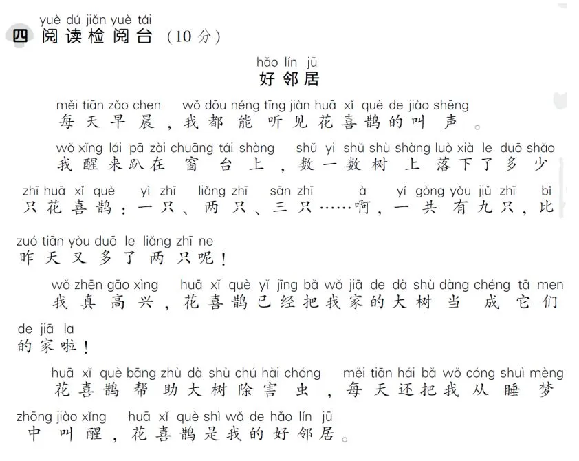 (4)示例:我背着书包走在上学的路上。路旁的花儿好像在对我微笑,小树向我招手,鸟儿对我歌唱。一切都是那么美好。