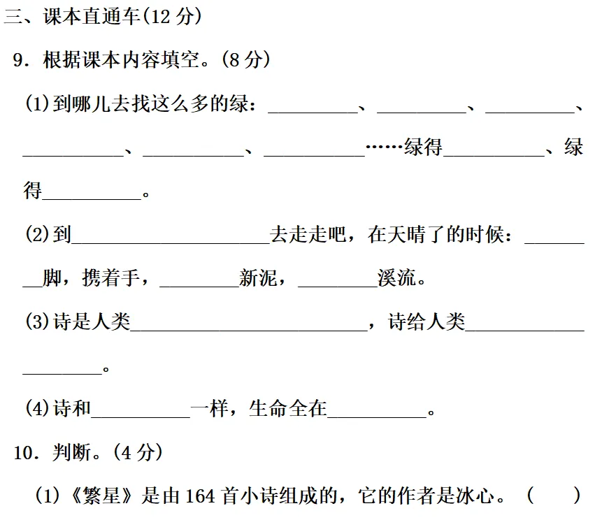4.(1)素 (2)匹 (3)明 (4)曼