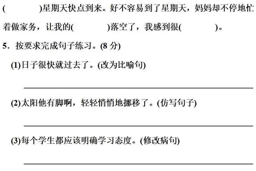 5.(1)示例:日子像一阵轻烟似的过去了。