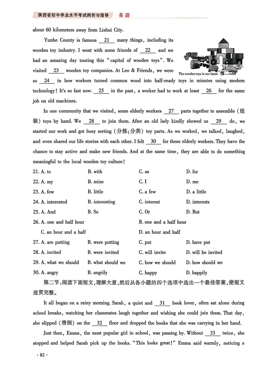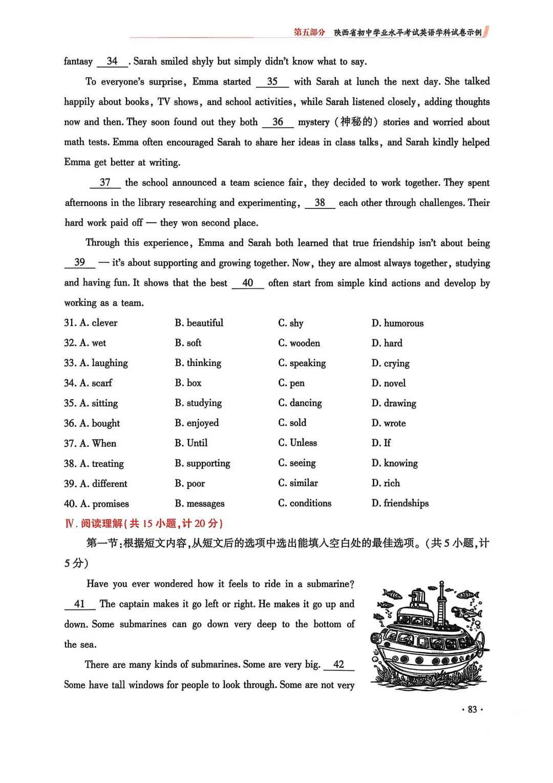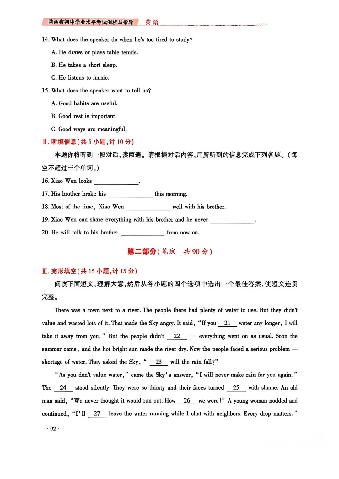 2. 完形填空由两节合并为一节(仅语意型完形),题量由20题调整为15题;