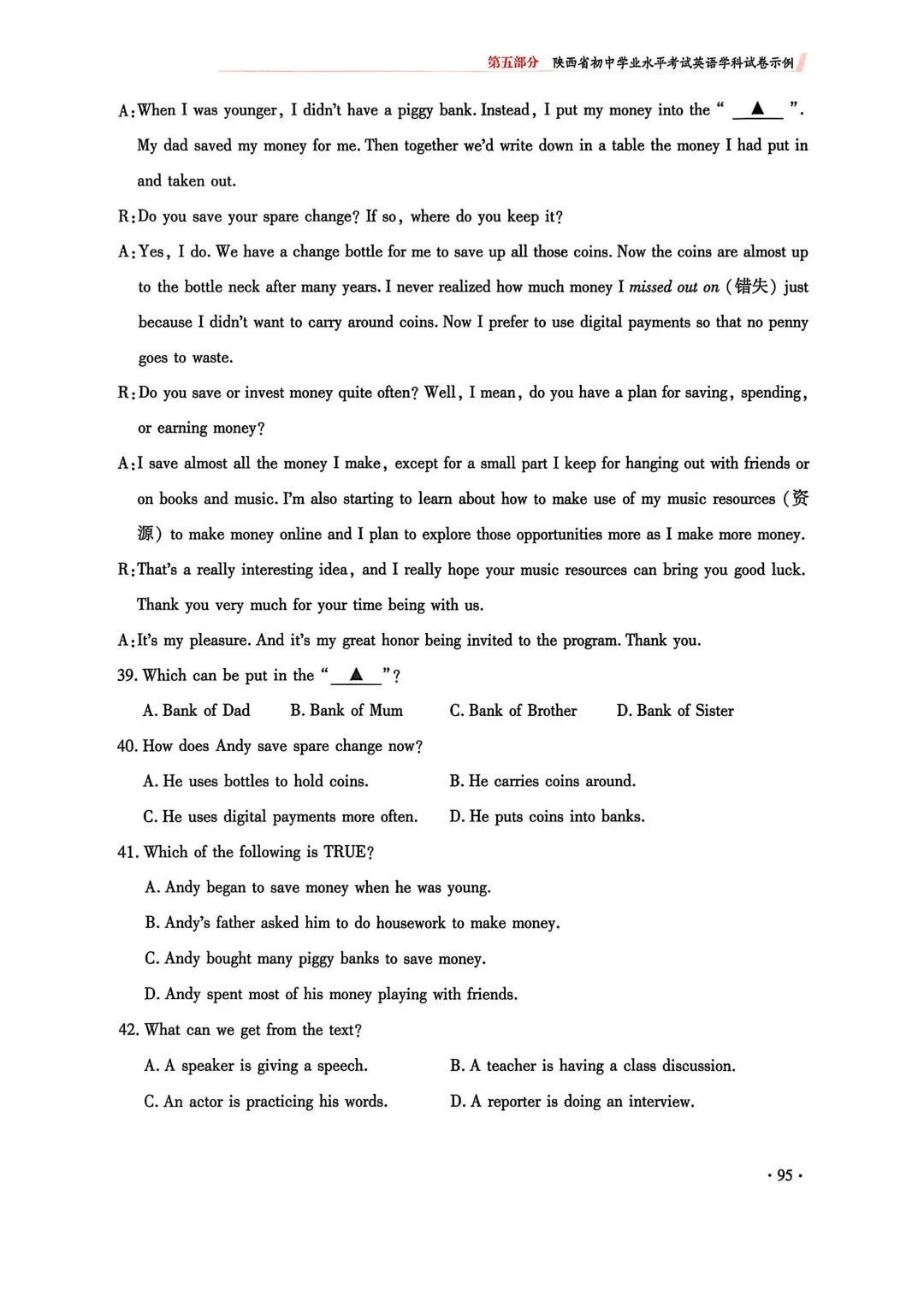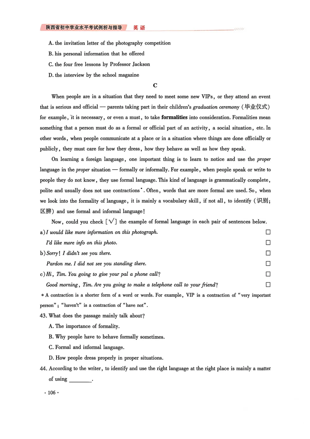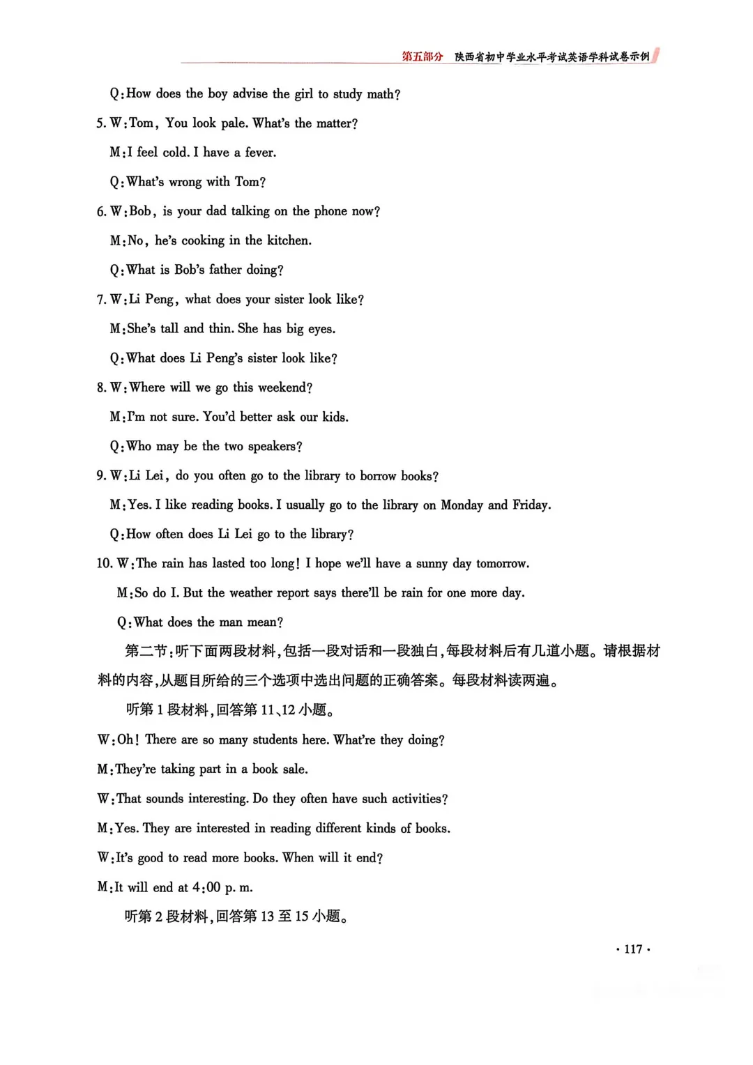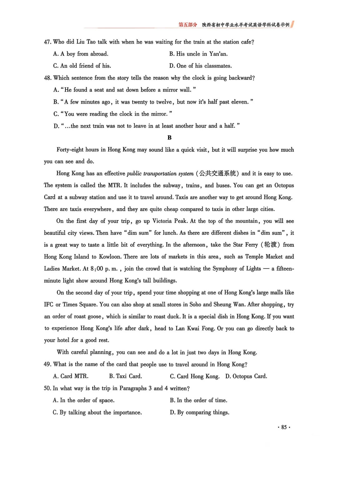 2. 完形填空由两节合并为一节(仅语意型完形),题量由20题调整为15题;