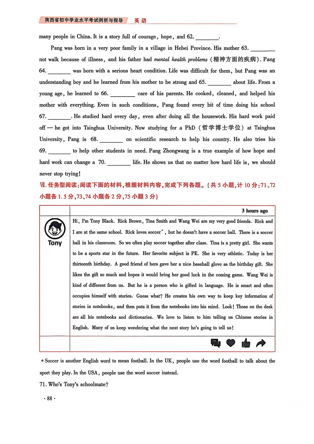 2.任务型阅读分值调整,由原每小题固定2分,改为根据题目难度灵活计分。