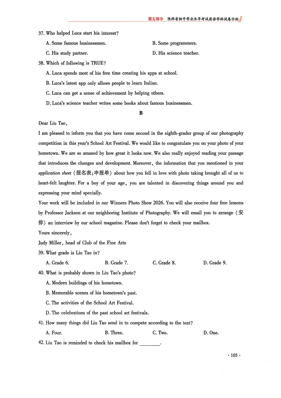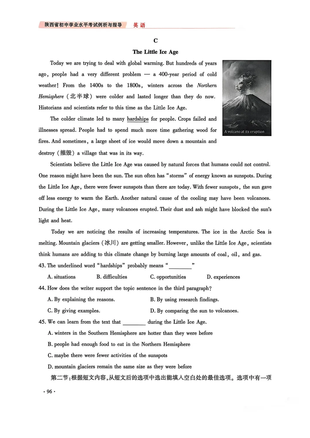 2. 完形填空由原来两节(语法型完形+语意型完形)合并为一节(仅语意型完形),题量由20题(10+10)调整为15题;