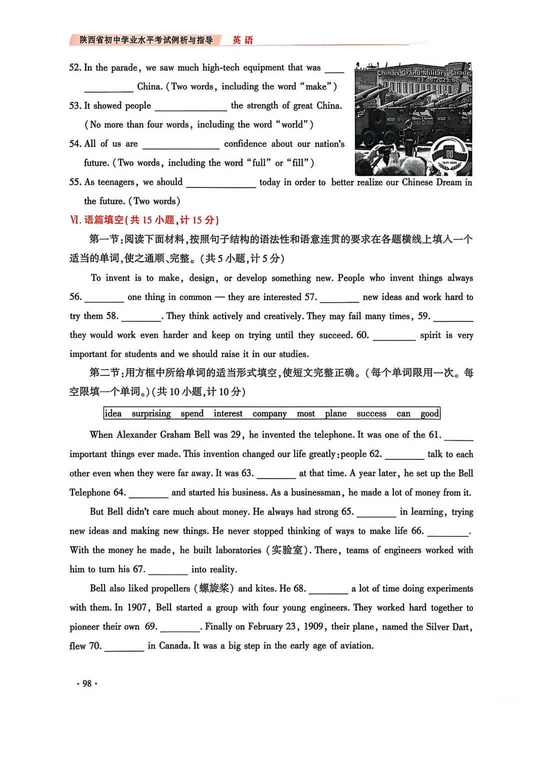 通过与2025年陕西中考英语真题对比分析可见:试卷示例①与2025年真题整体结构基本一致,仅在形式上略有调整;试卷示例②、③则与2025年真题在考查形式上存在较大差异,具体变化如下: