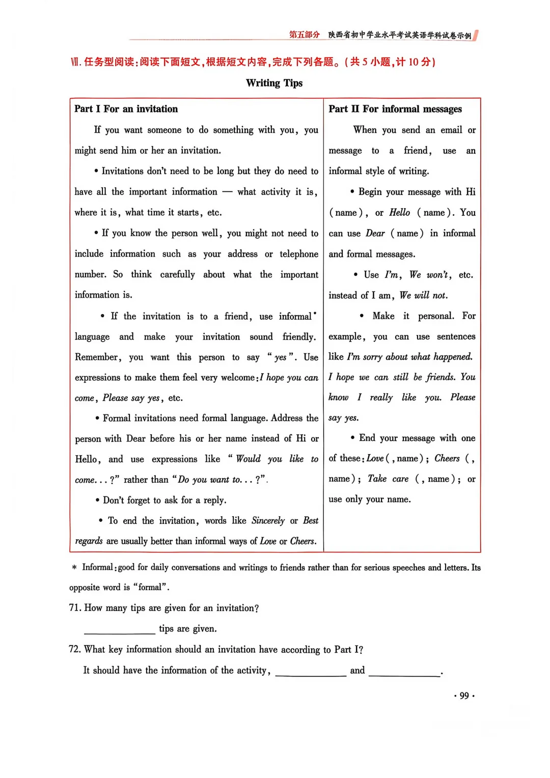 4. 任务型阅读分值调整为按难度计分,考查形式由问答型改为补全句子型;