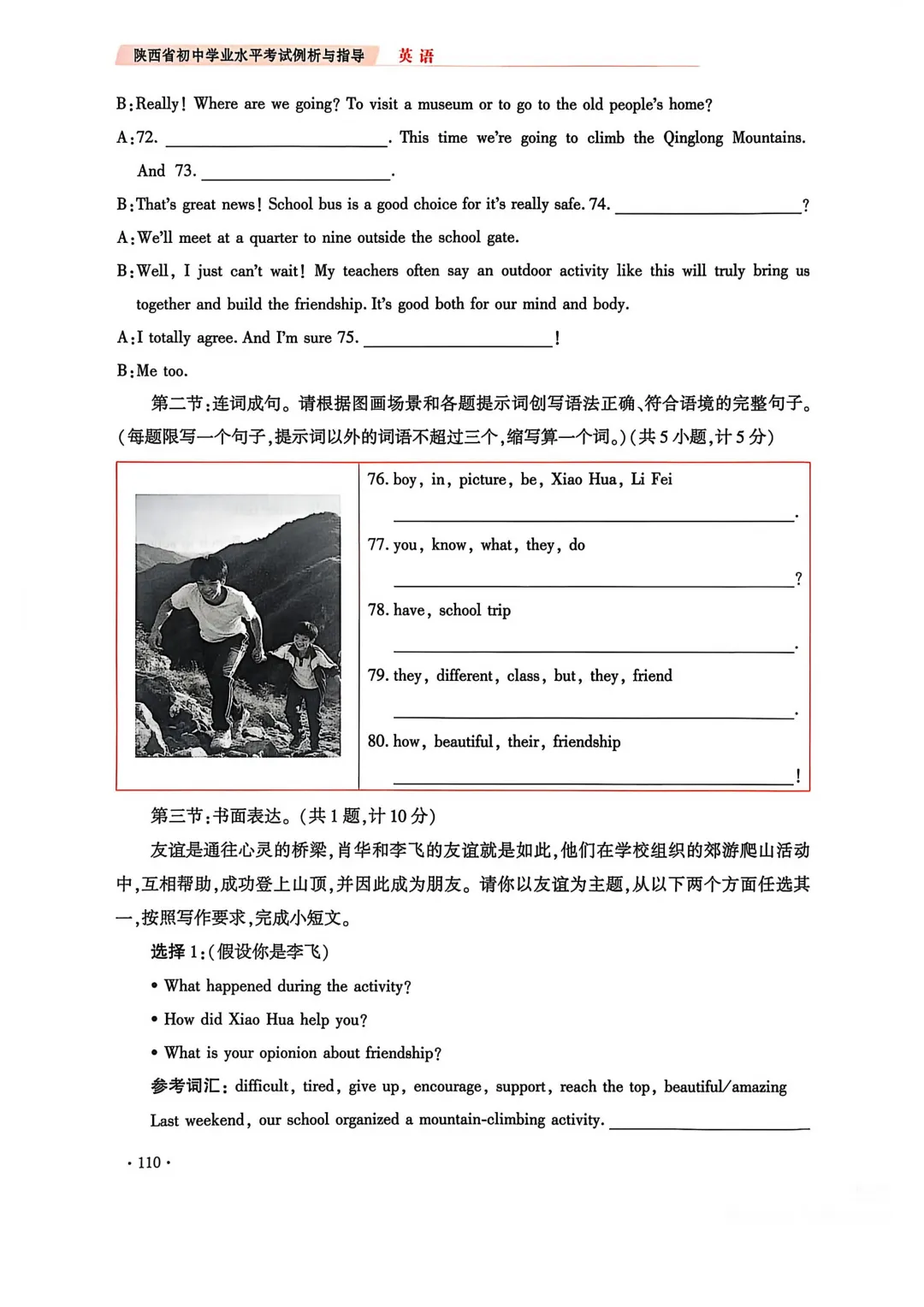4. 完成句子题型调整:不再提供汉语提示,改为根据图画情境及英文句意填写单词或短语;