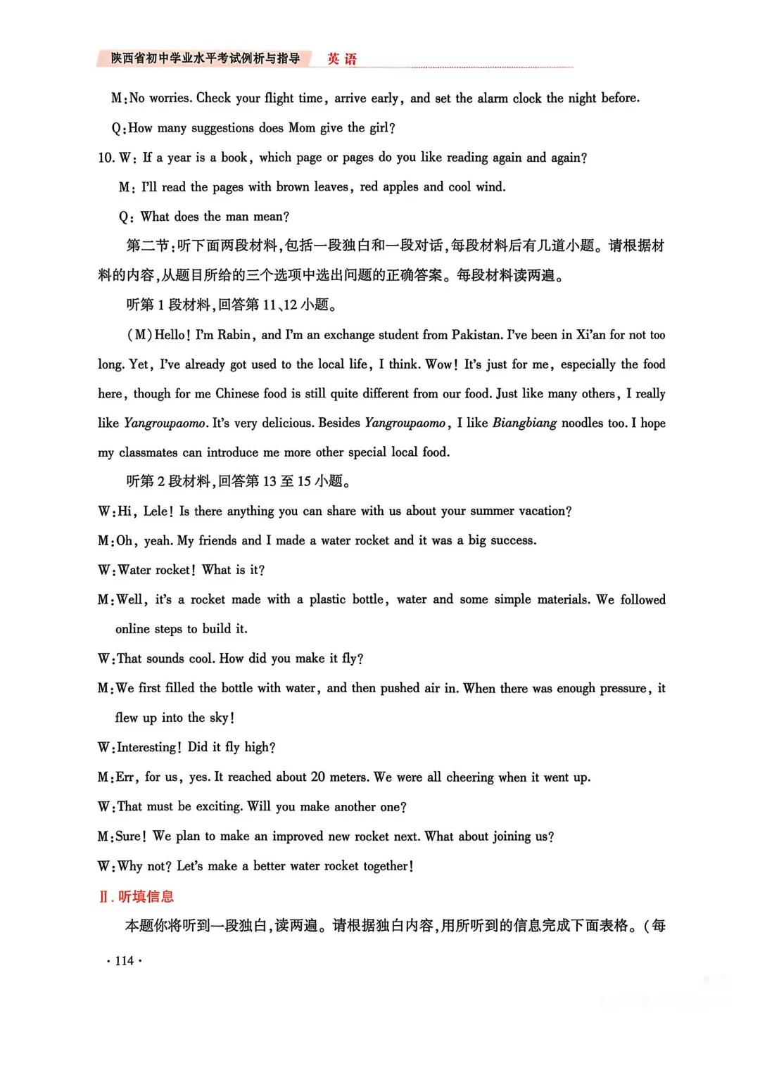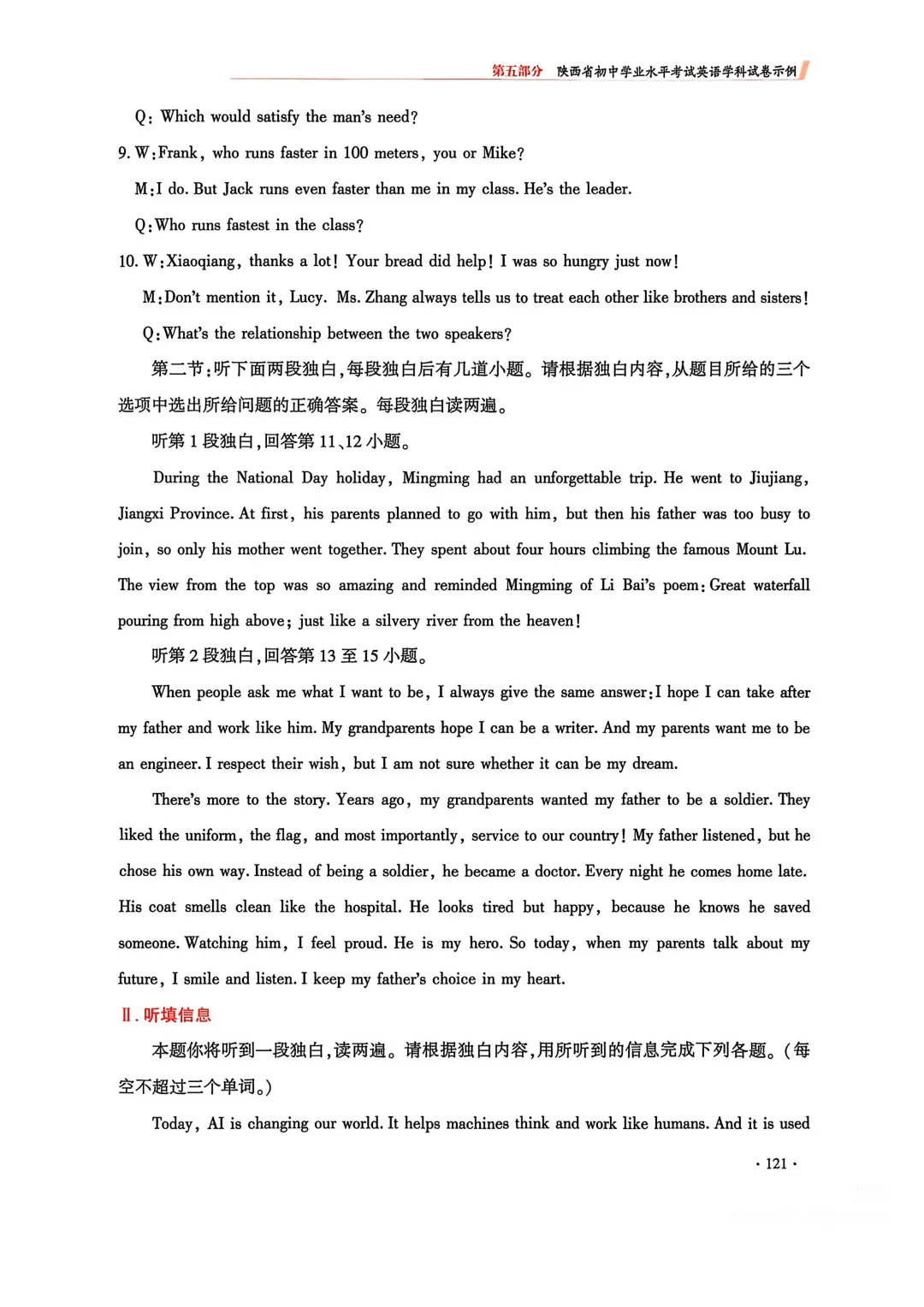 1. 第11、12段听力材料及听填信息文本均以独白形式呈现;