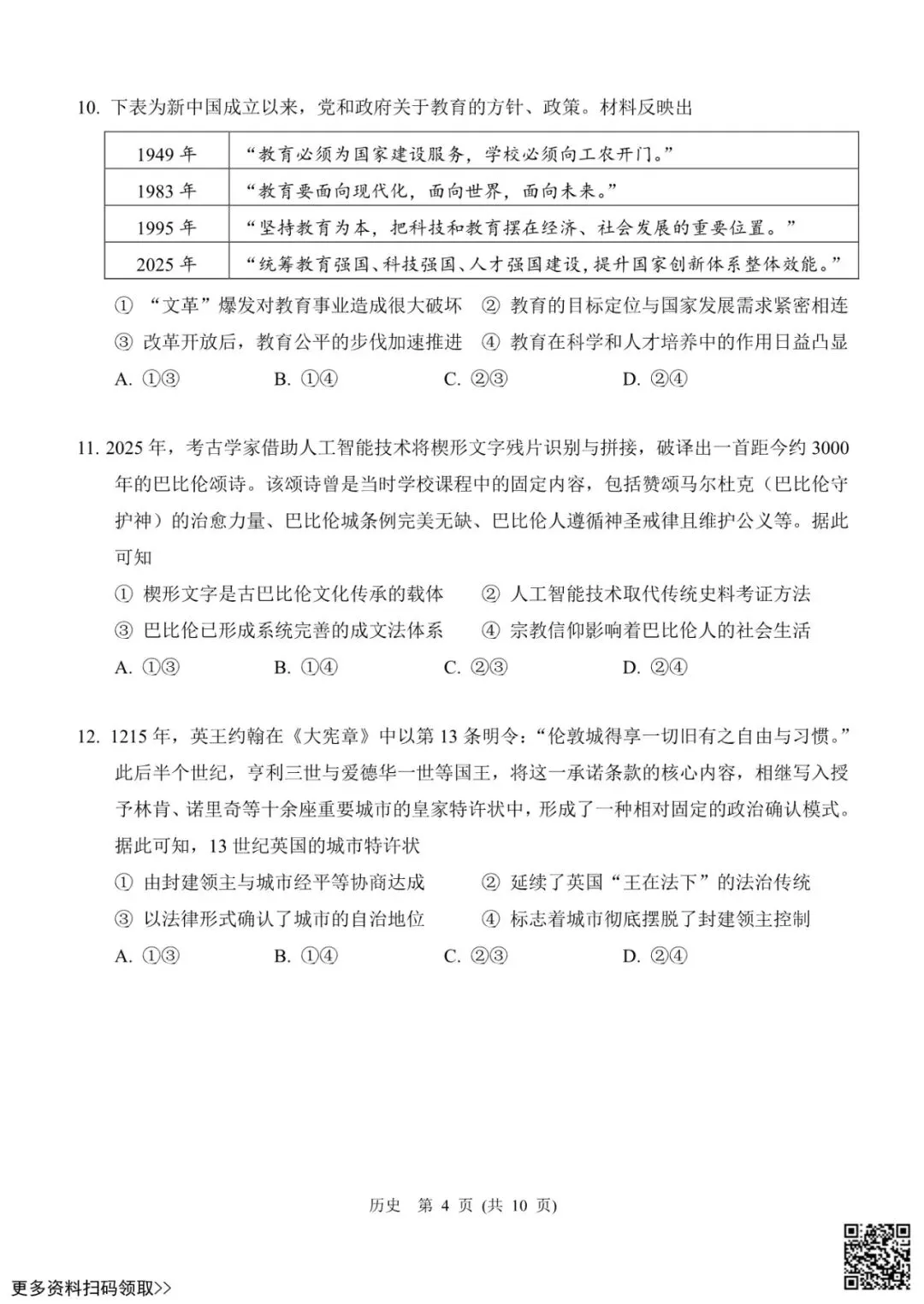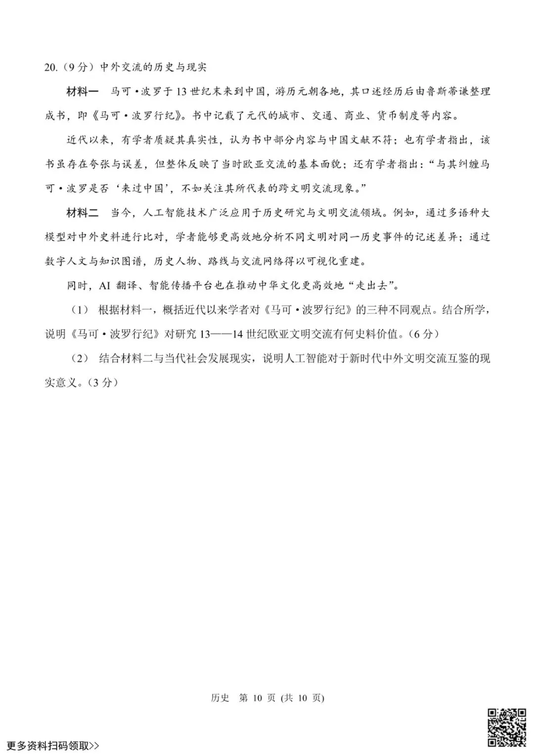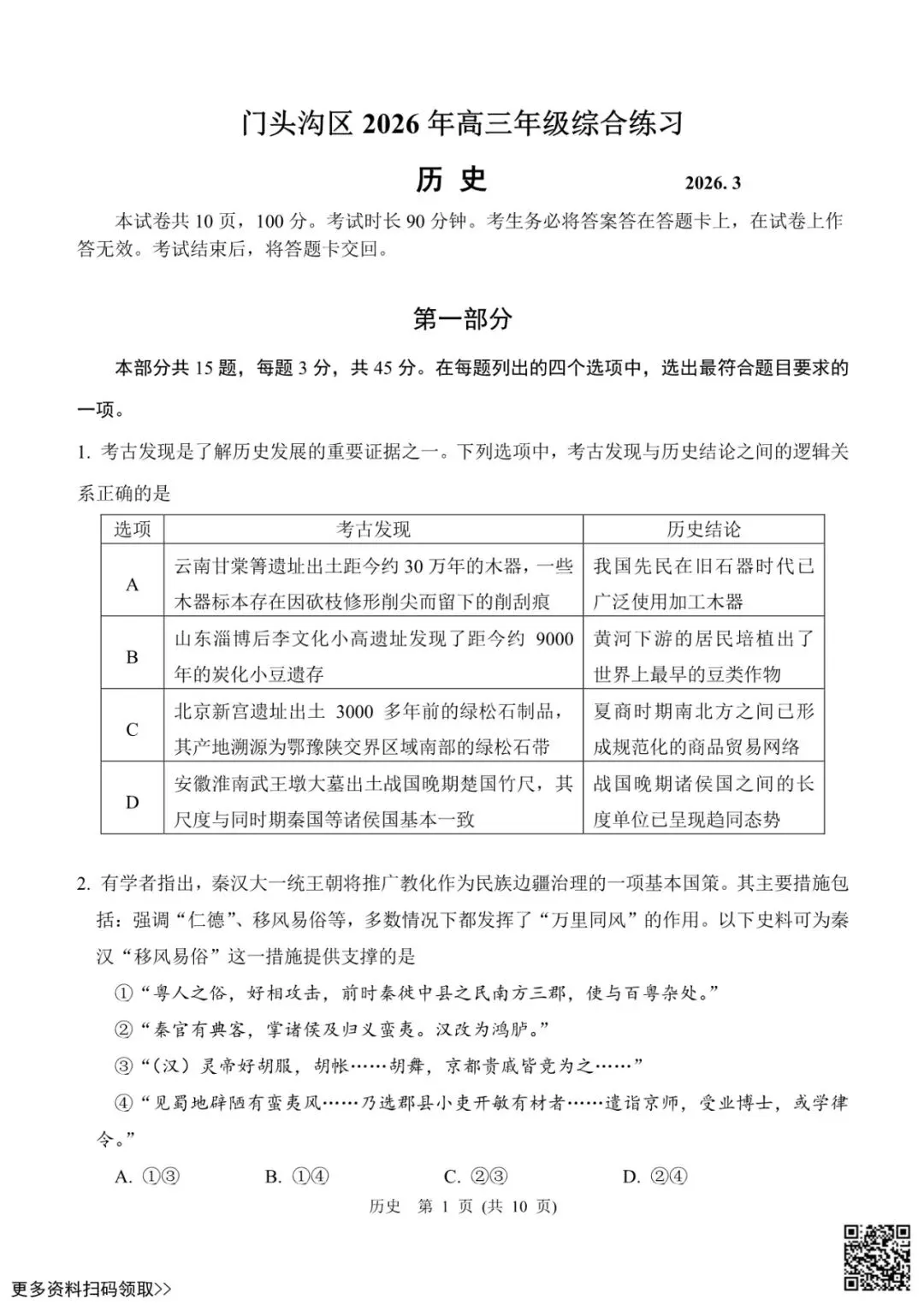 今天给大家分享的是2026北京门头沟高三一模历史试卷(含答案),其他区域或学校的学生都可以练一练。近期会持续分享,欢迎大家多多关注,也可以把我们分享给更多人哦。