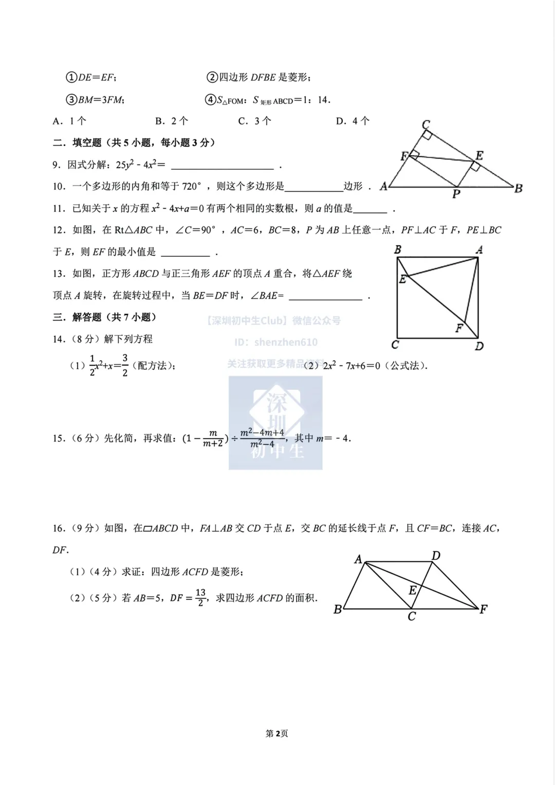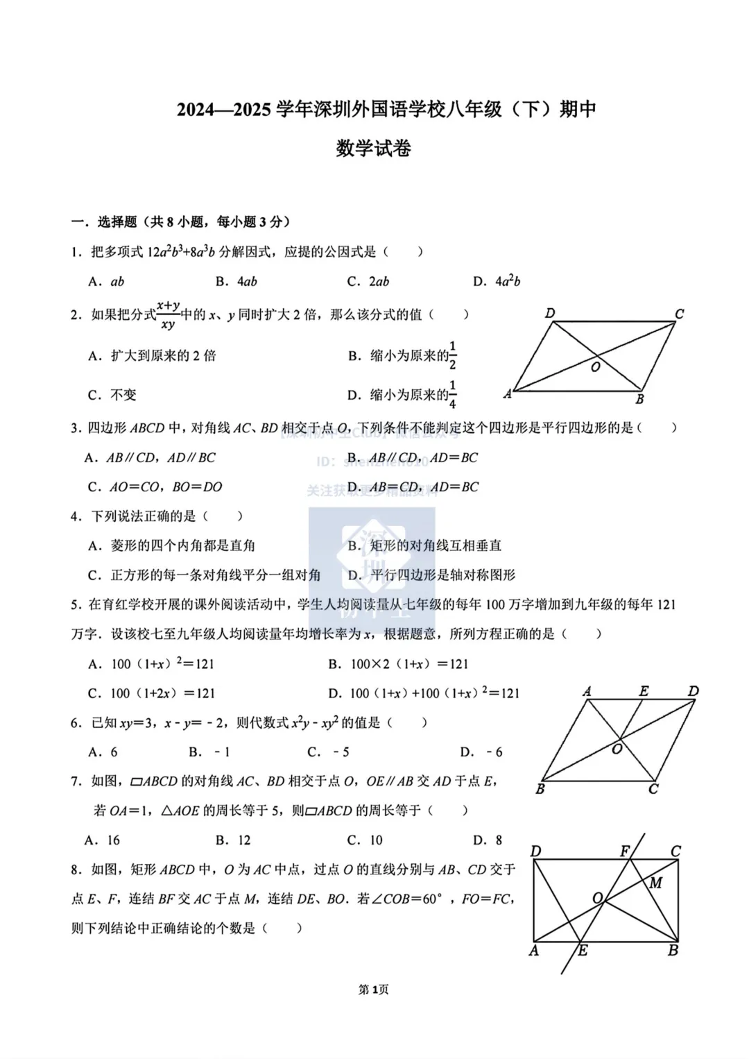 我们整理了深圳外国语学校2024-2025学年八年级下学期数学期中考试卷及参考答案,pdf版本可打印练习!