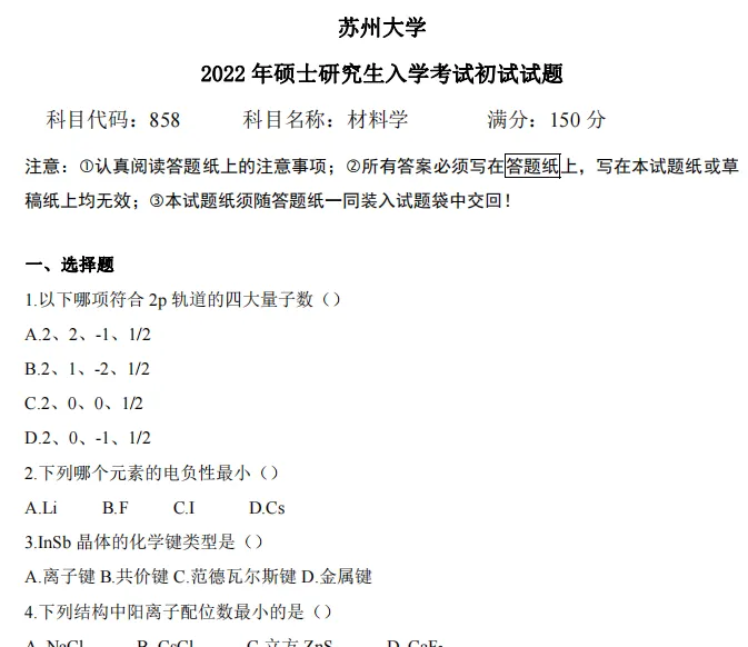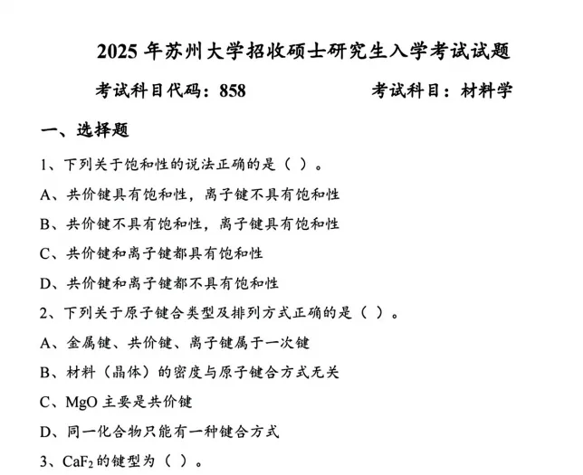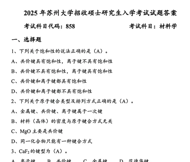 2010-2025年苏州大学858材料学考研真题参考答案(不含11)