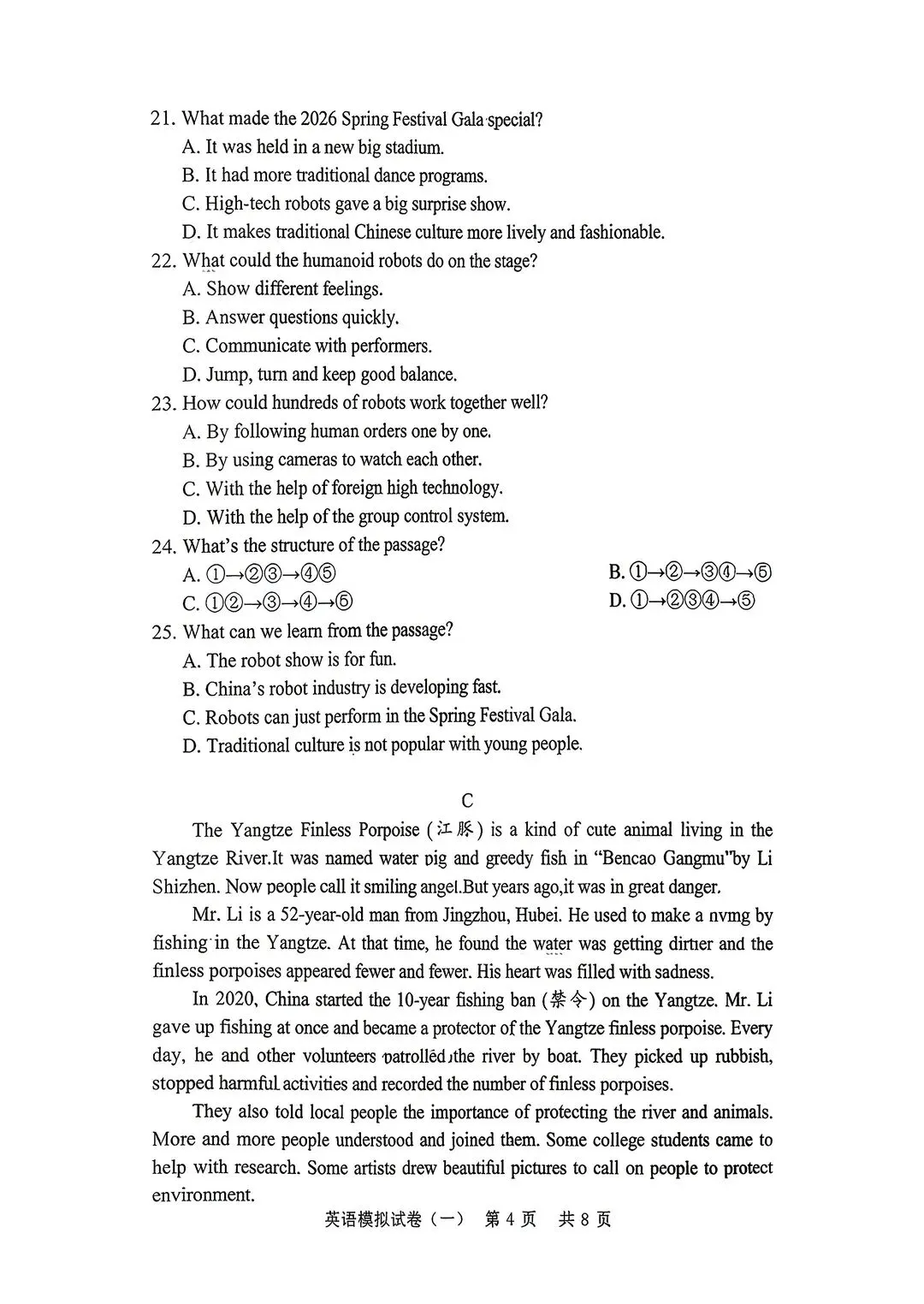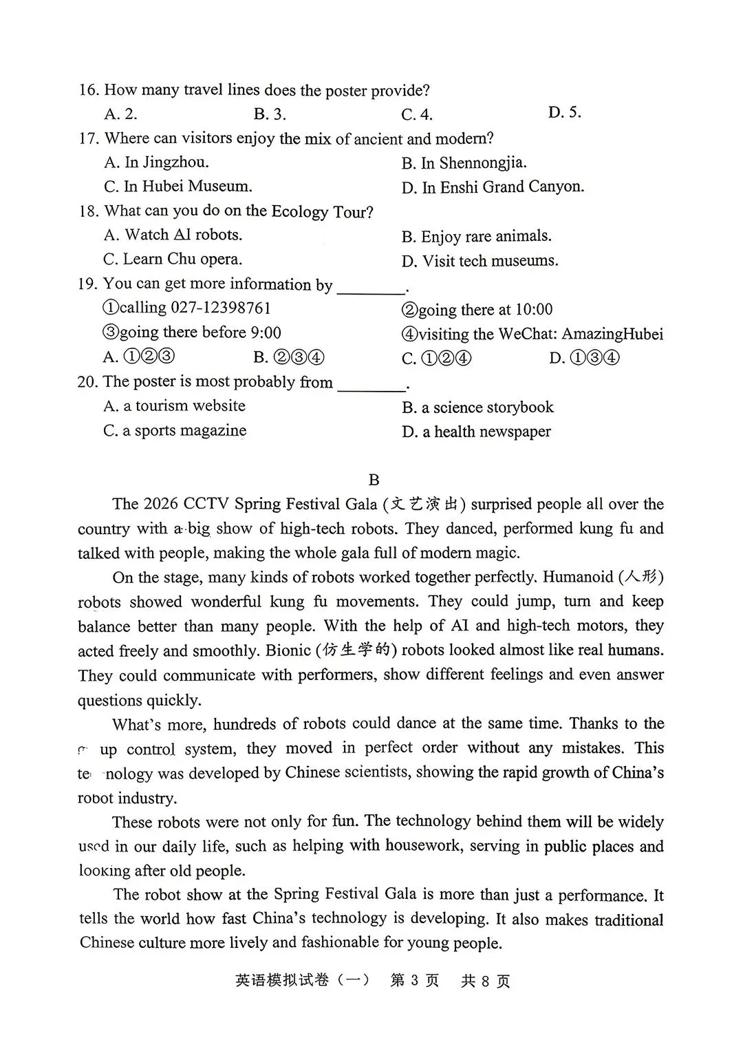 >最新9下26年湖北省一模英语试卷