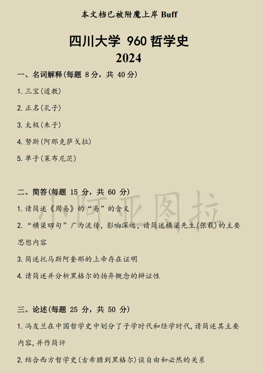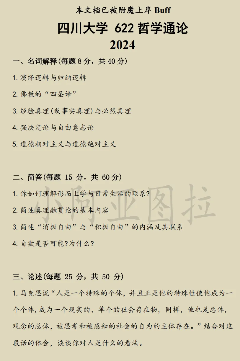 赠原哲学通论科目真题,2025改革后初试不再考察,仅作参考