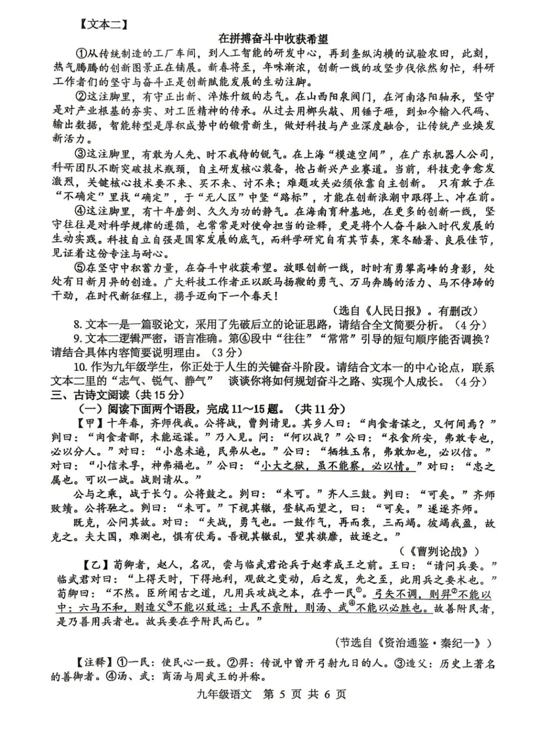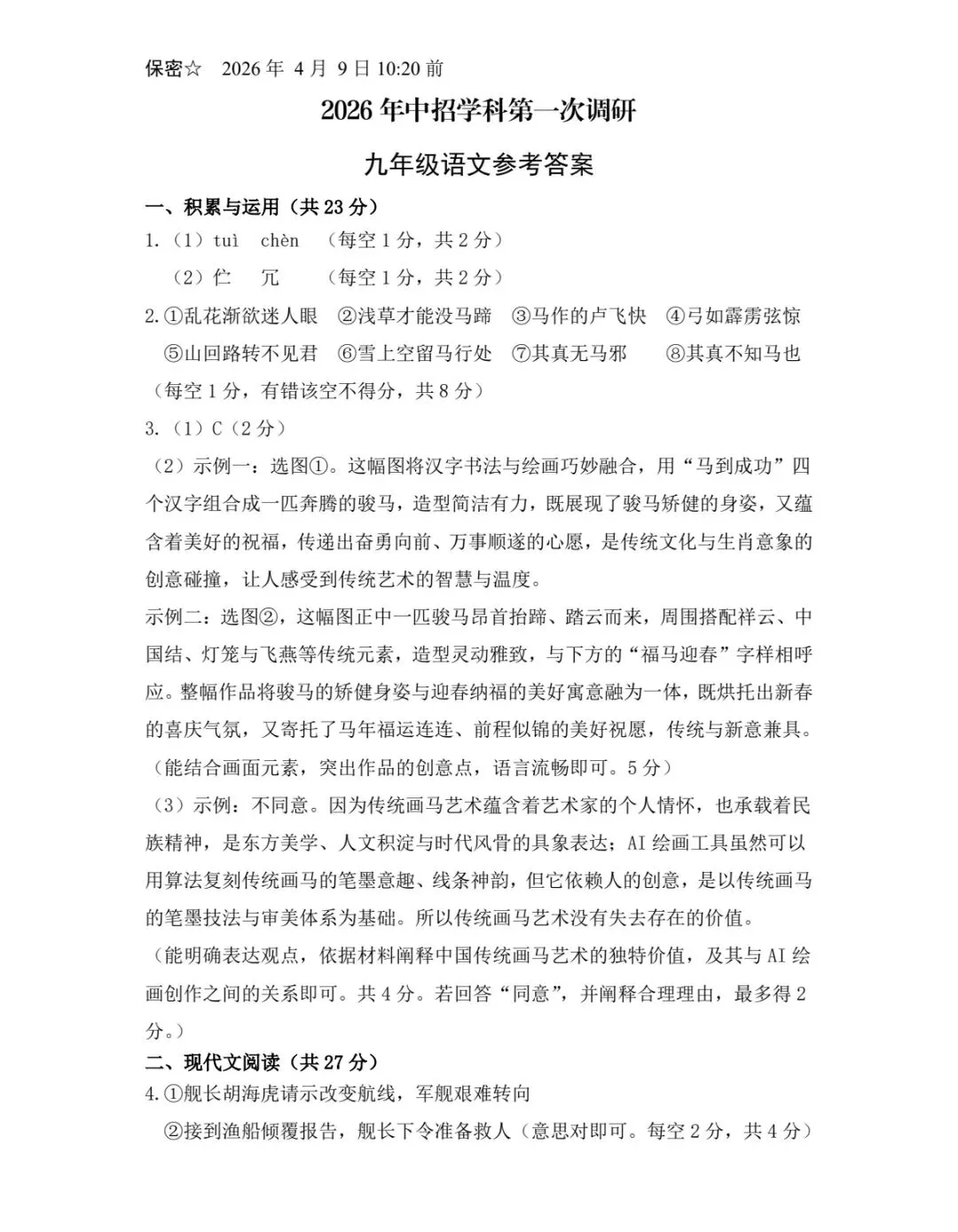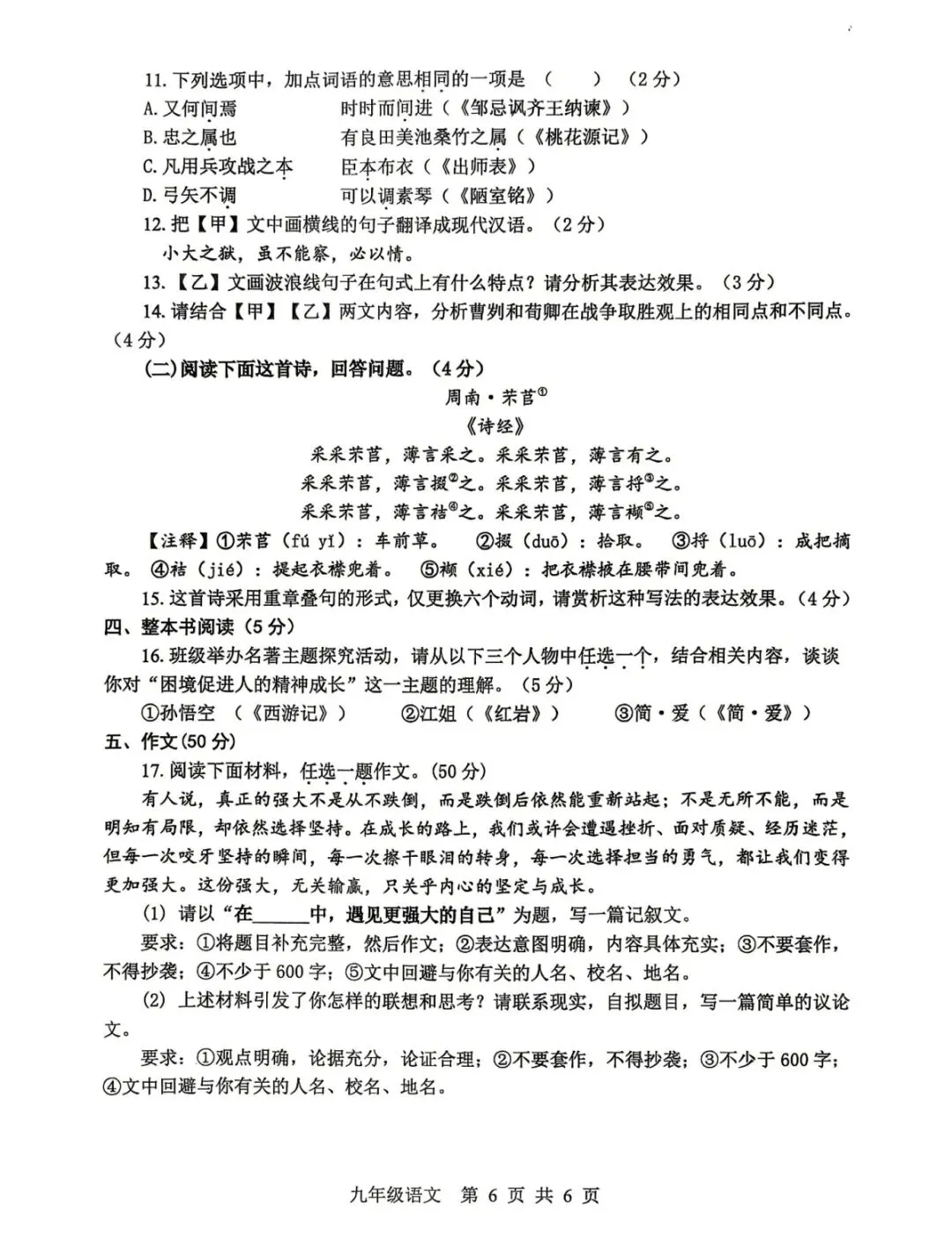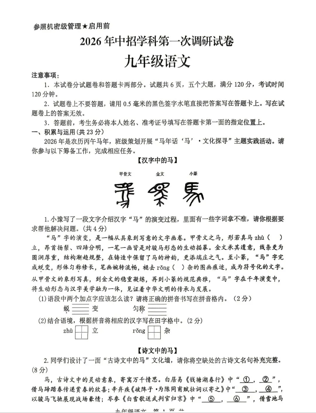 2026中考语文调研试卷