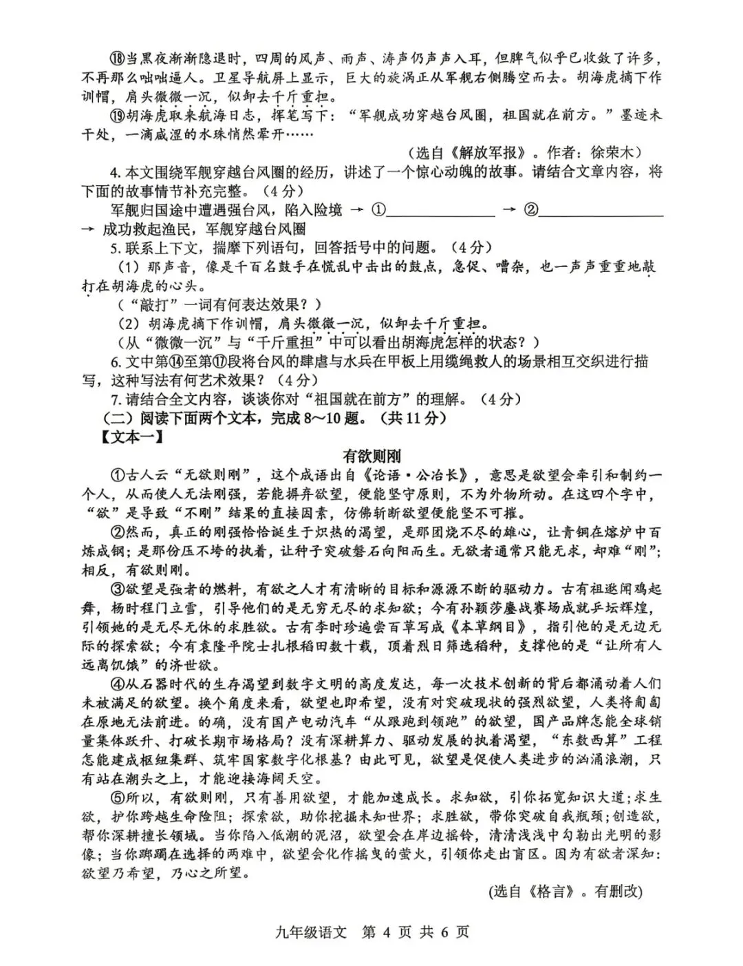 >2026中考语文调研试卷