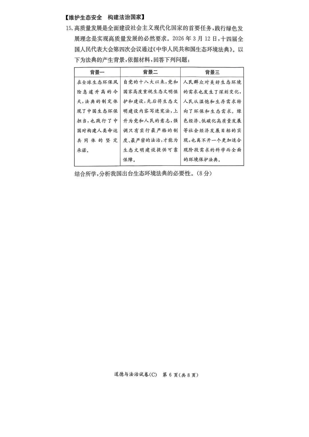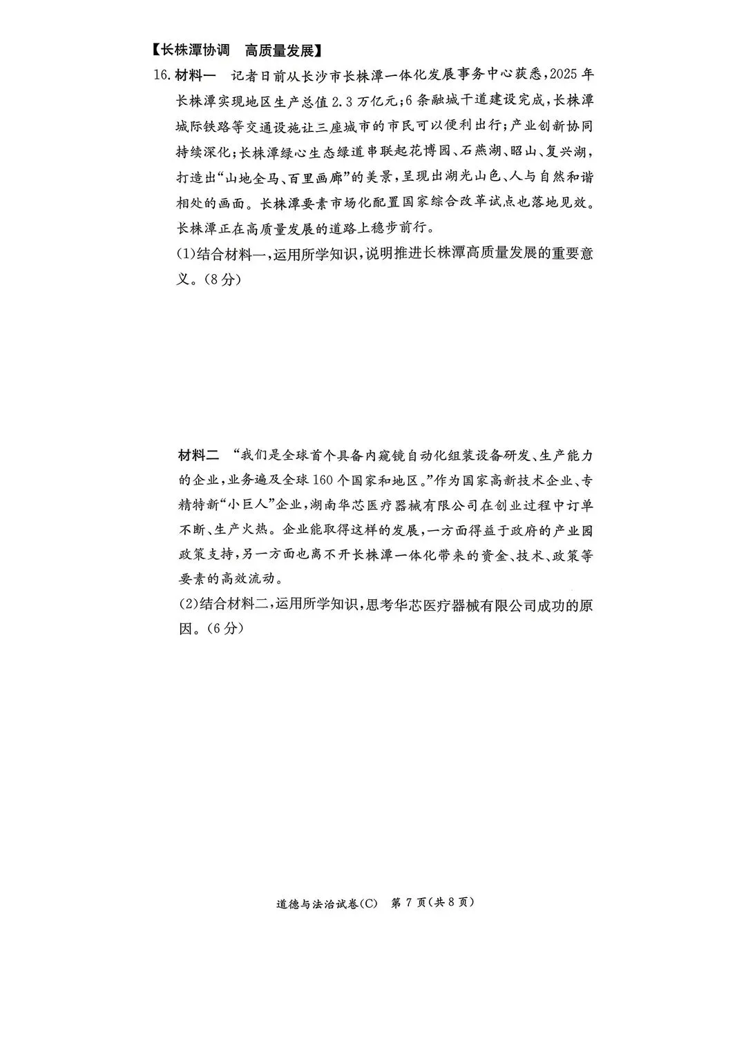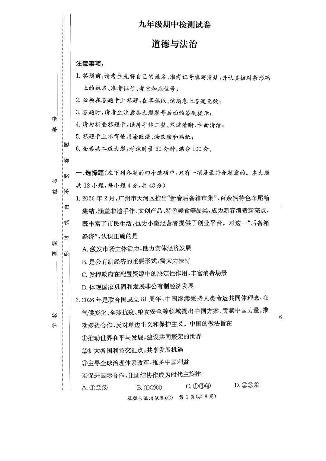 长郡九年级期中检测试卷答案——道德与法治(2026.4.10)