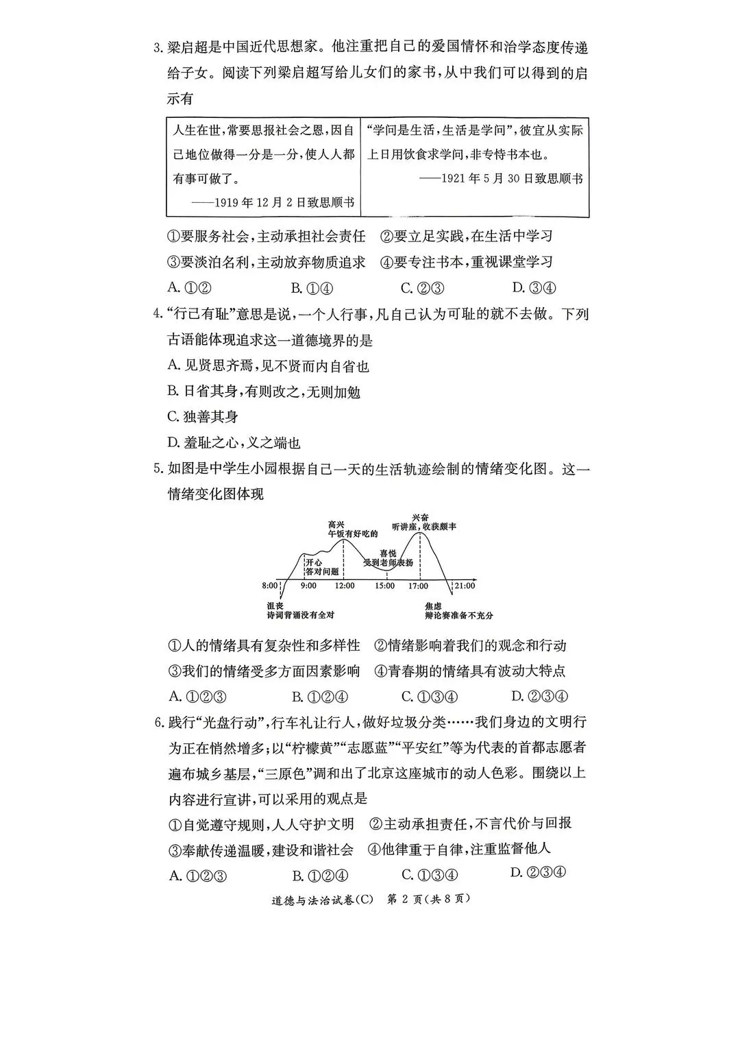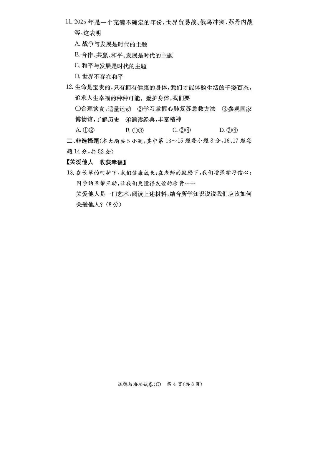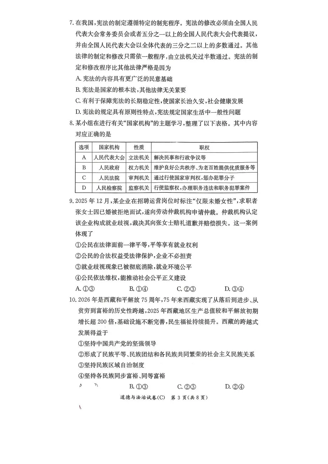 长郡九年级期中检测试卷答案——道德与法治(2026.4.10)
