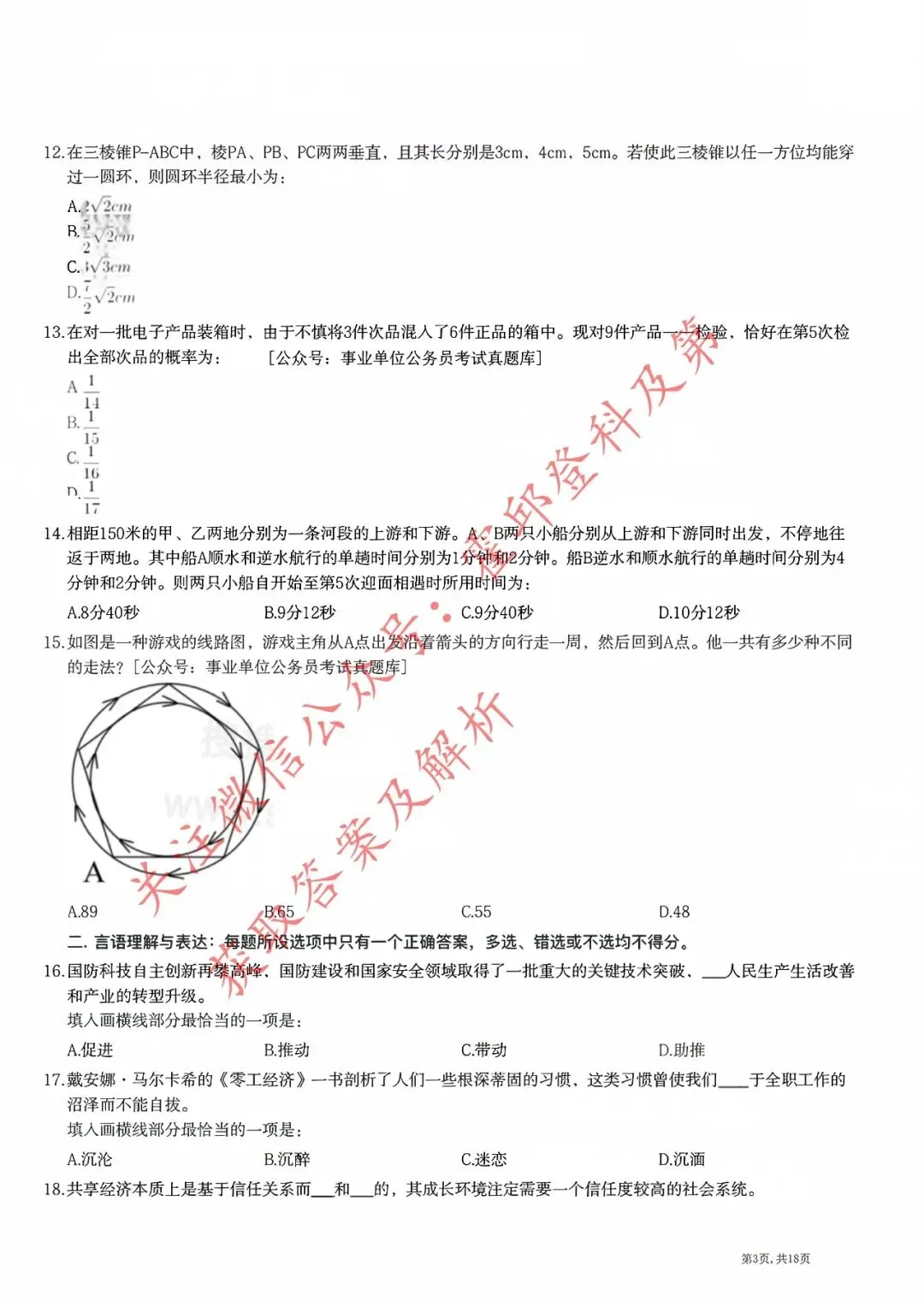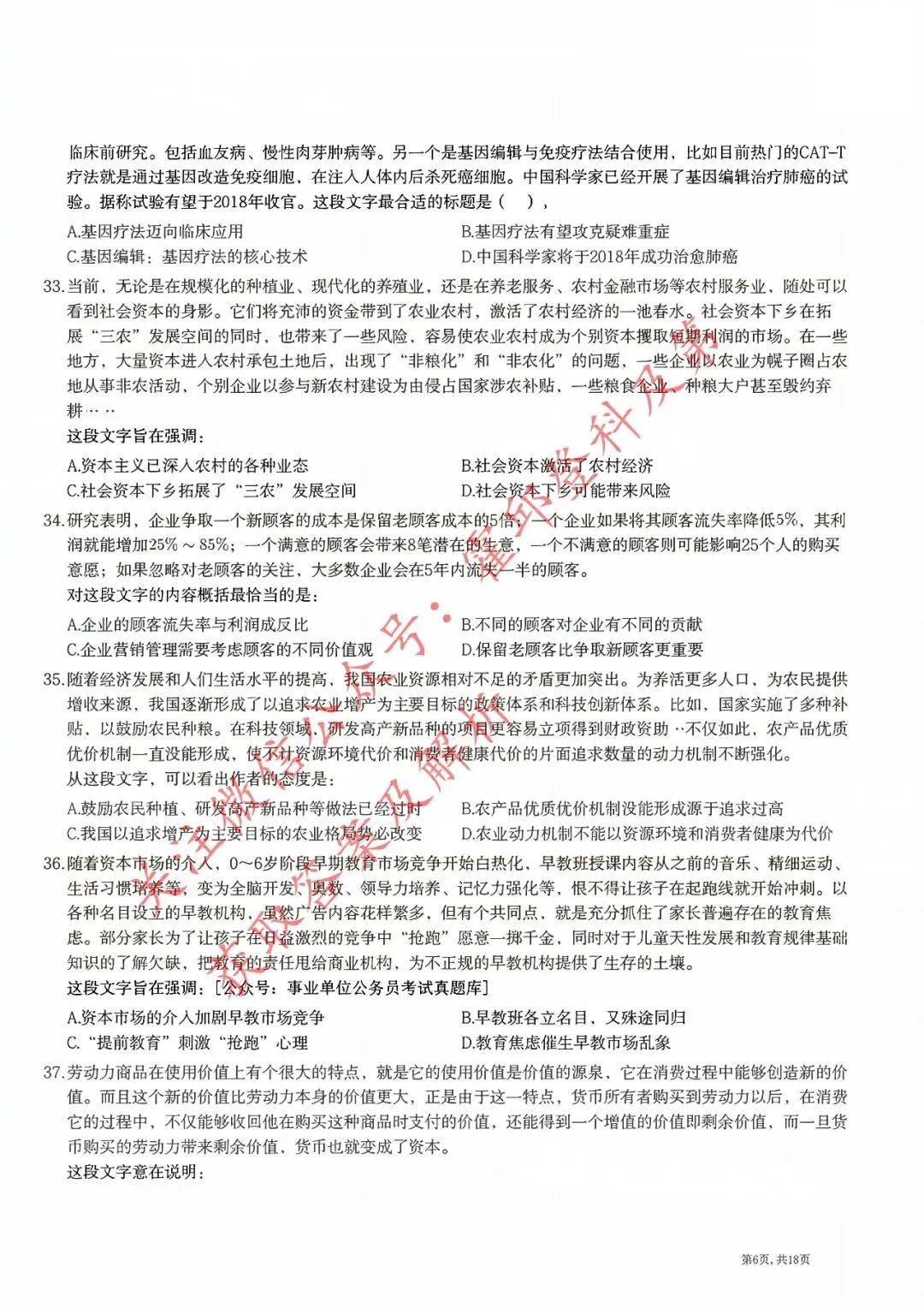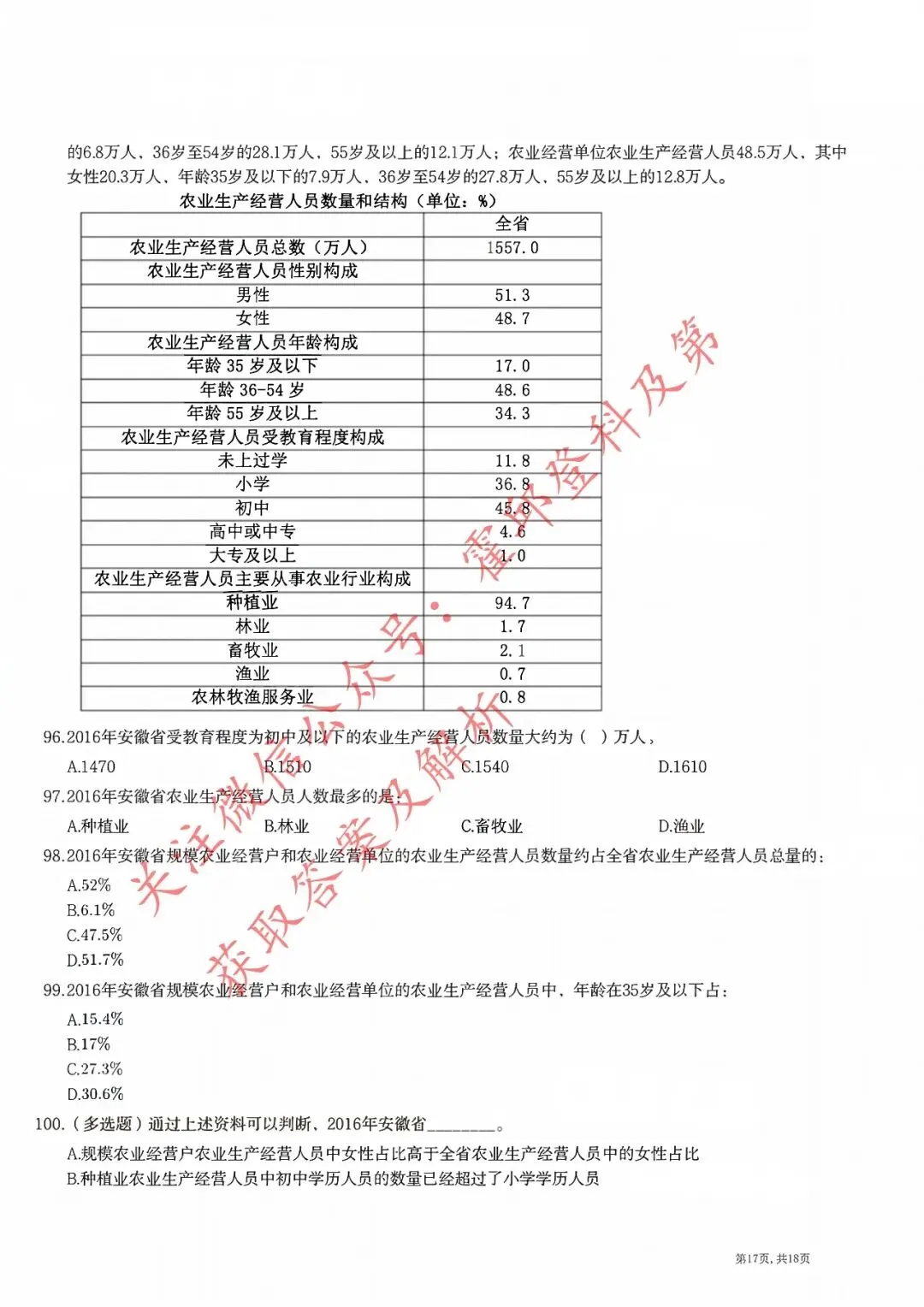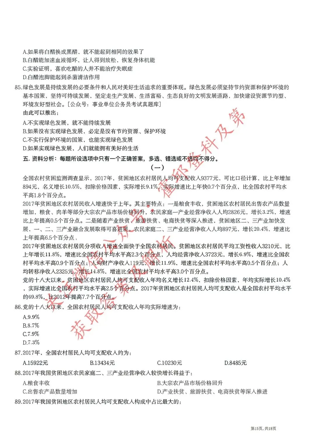 >历年真题:2018年安徽三支一扶《职业能力测试》真题