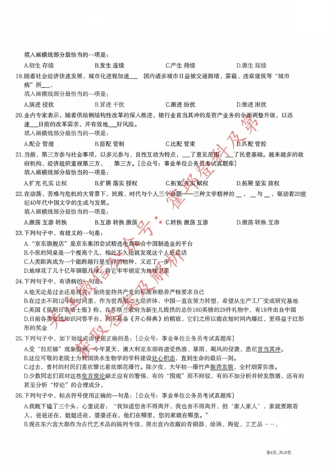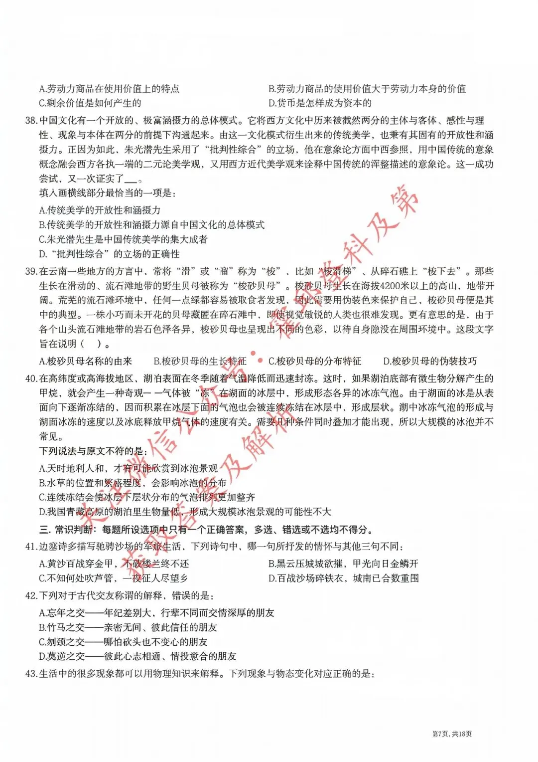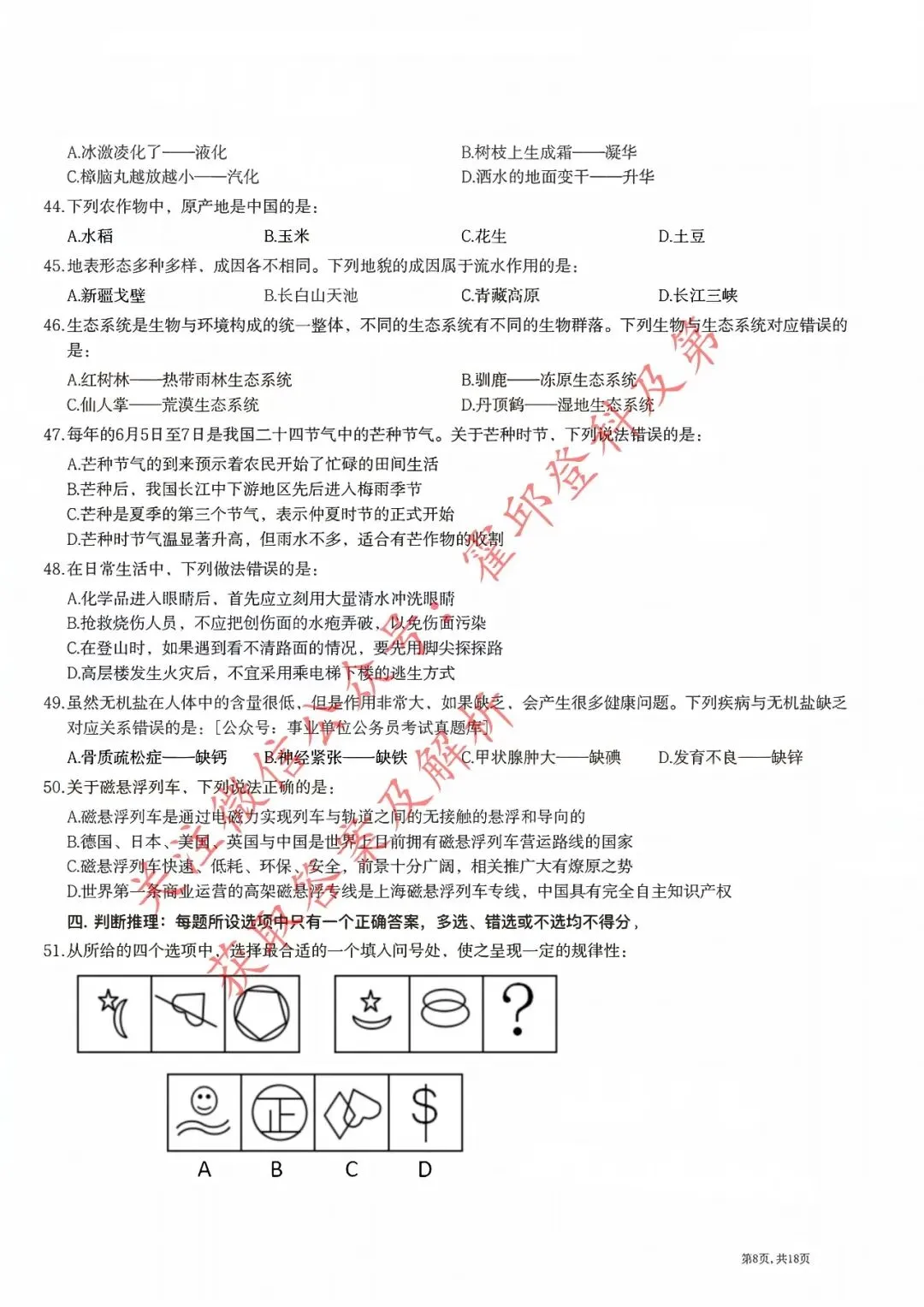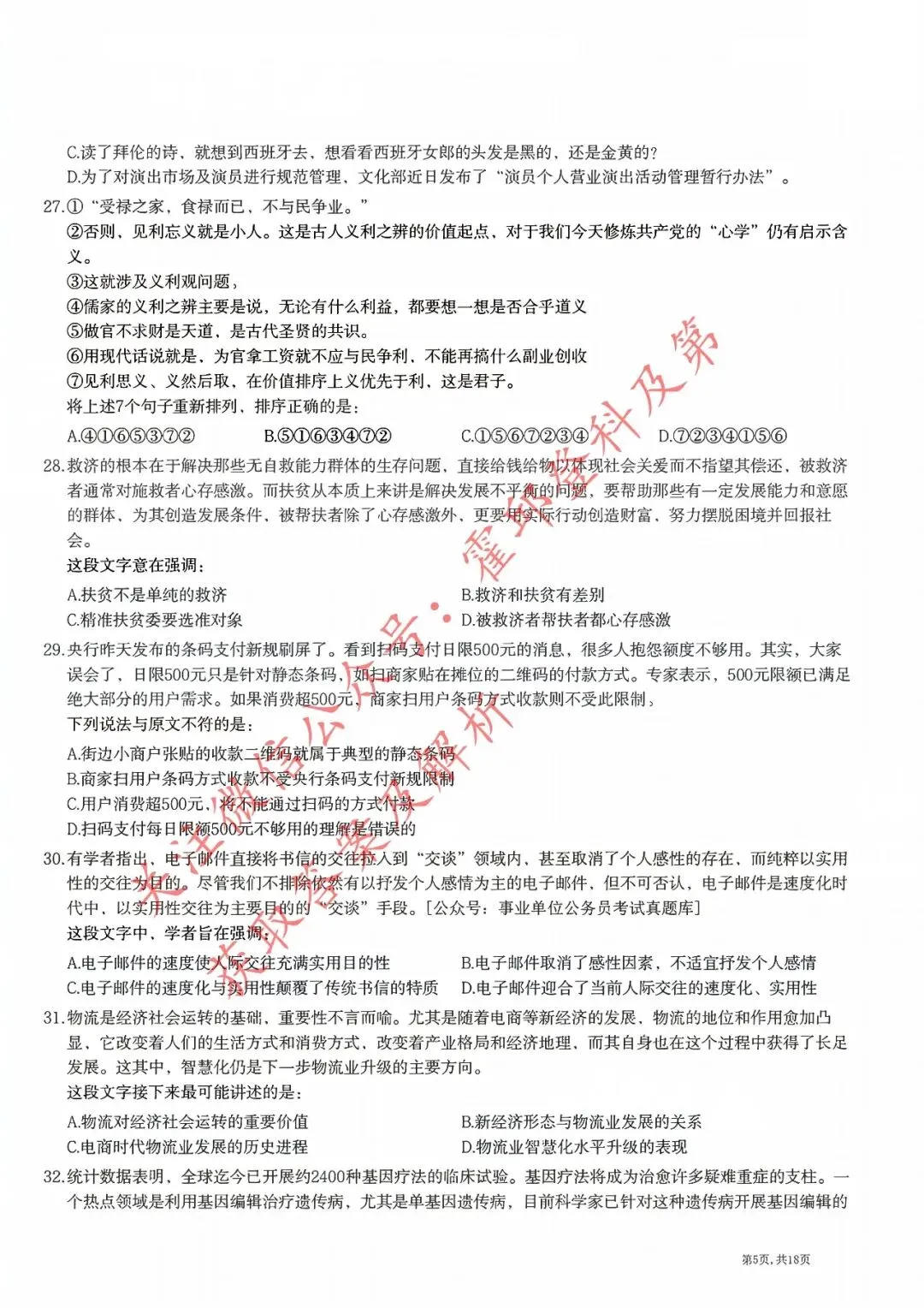 历年真题:2018年安徽三支一扶《职业能力测试》真题