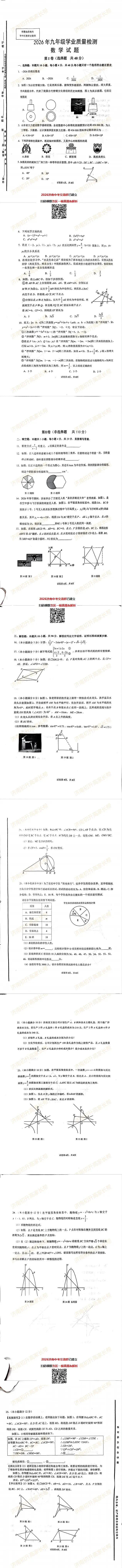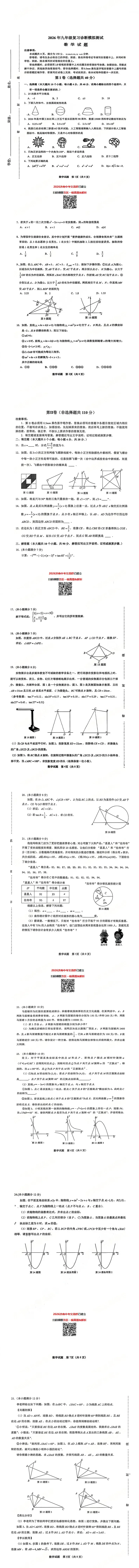 【数学】2026历城区初三一模真题!含答案!可打印电子版!