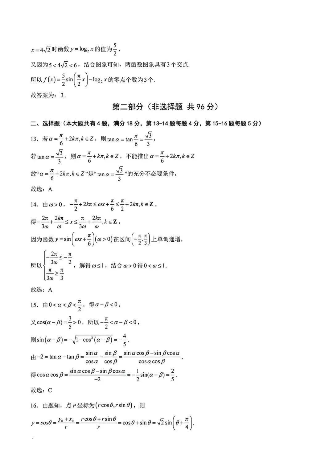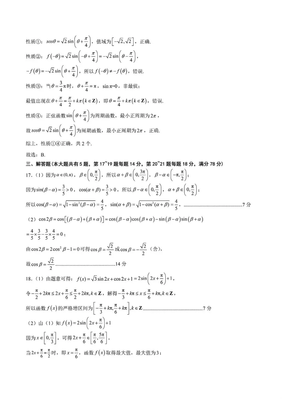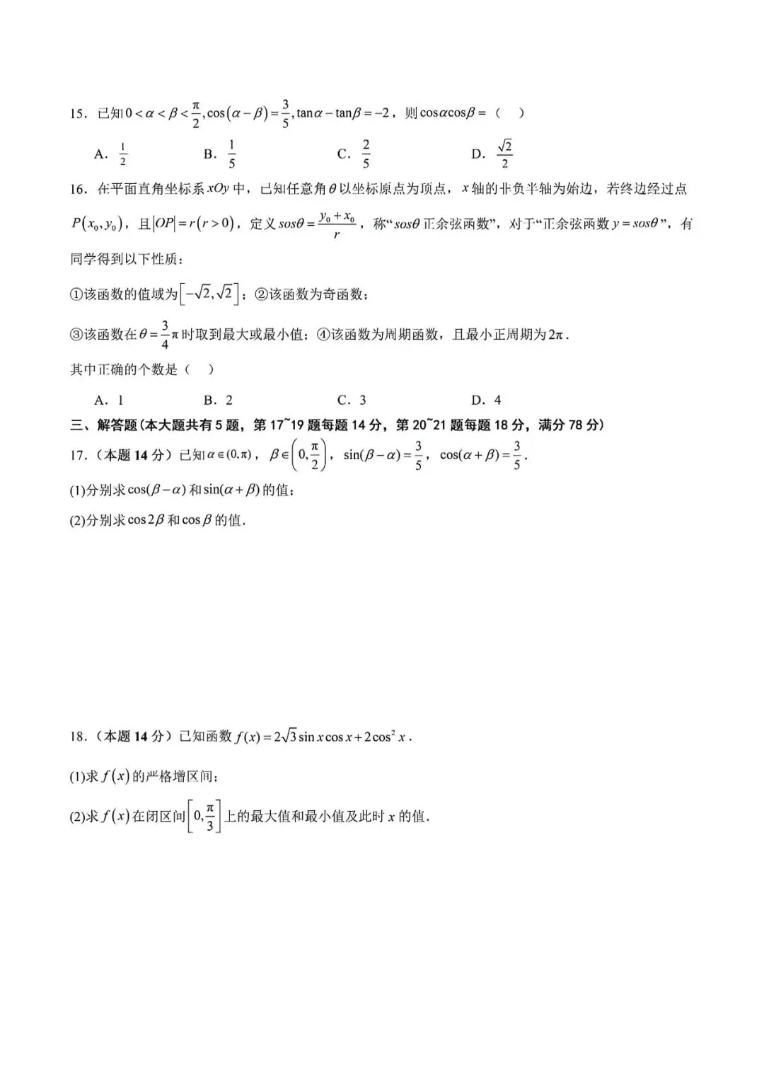 曹杨二中高一/高二月考数学试卷及答案(2026.03)